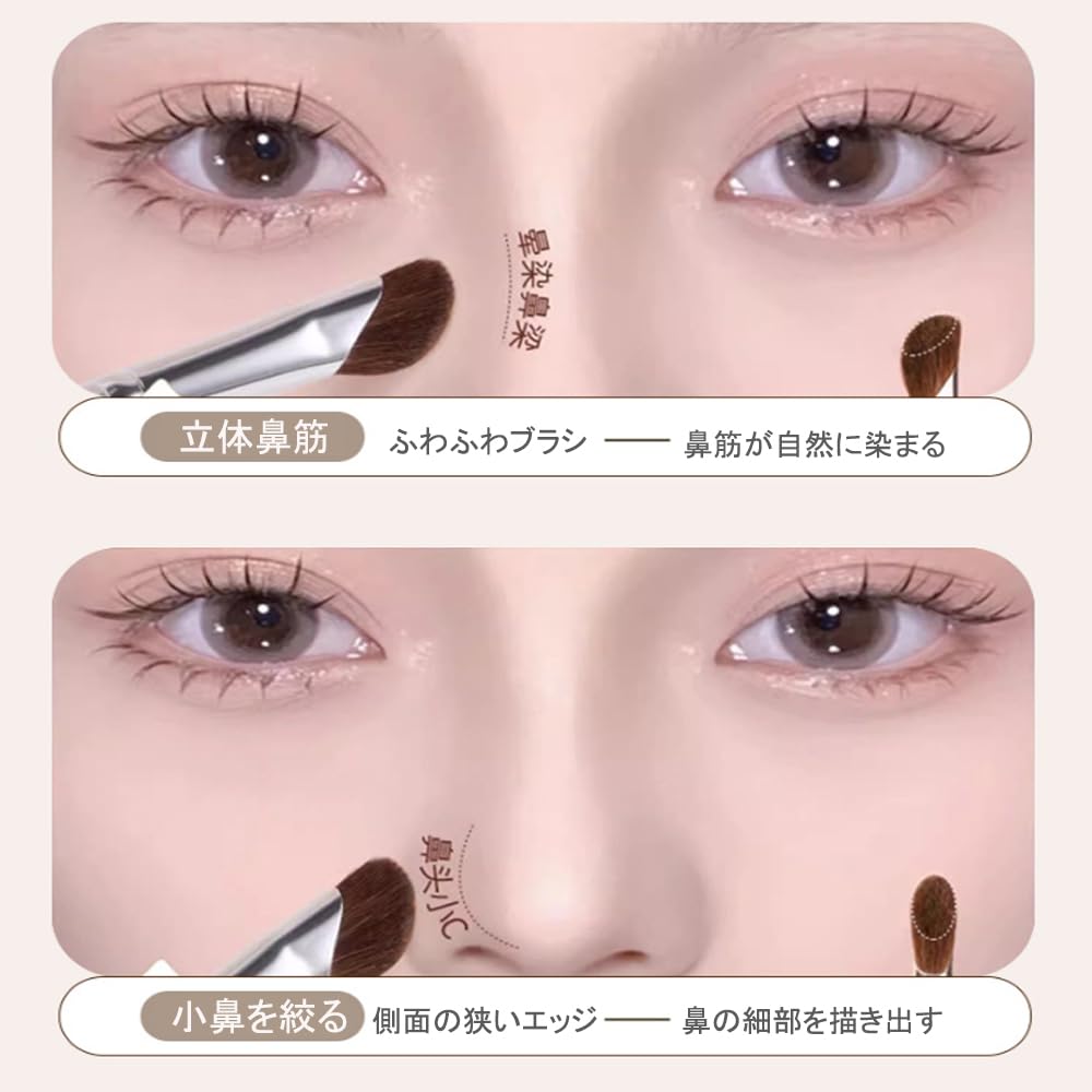 【粉含みよい】毛は適度に長くて柔らかく、粉を含める能力は十分です、厚塗り感が出にくくナチュラルに仕上げることができます。初心者でも簡単に美しい鼻を描くことができます。