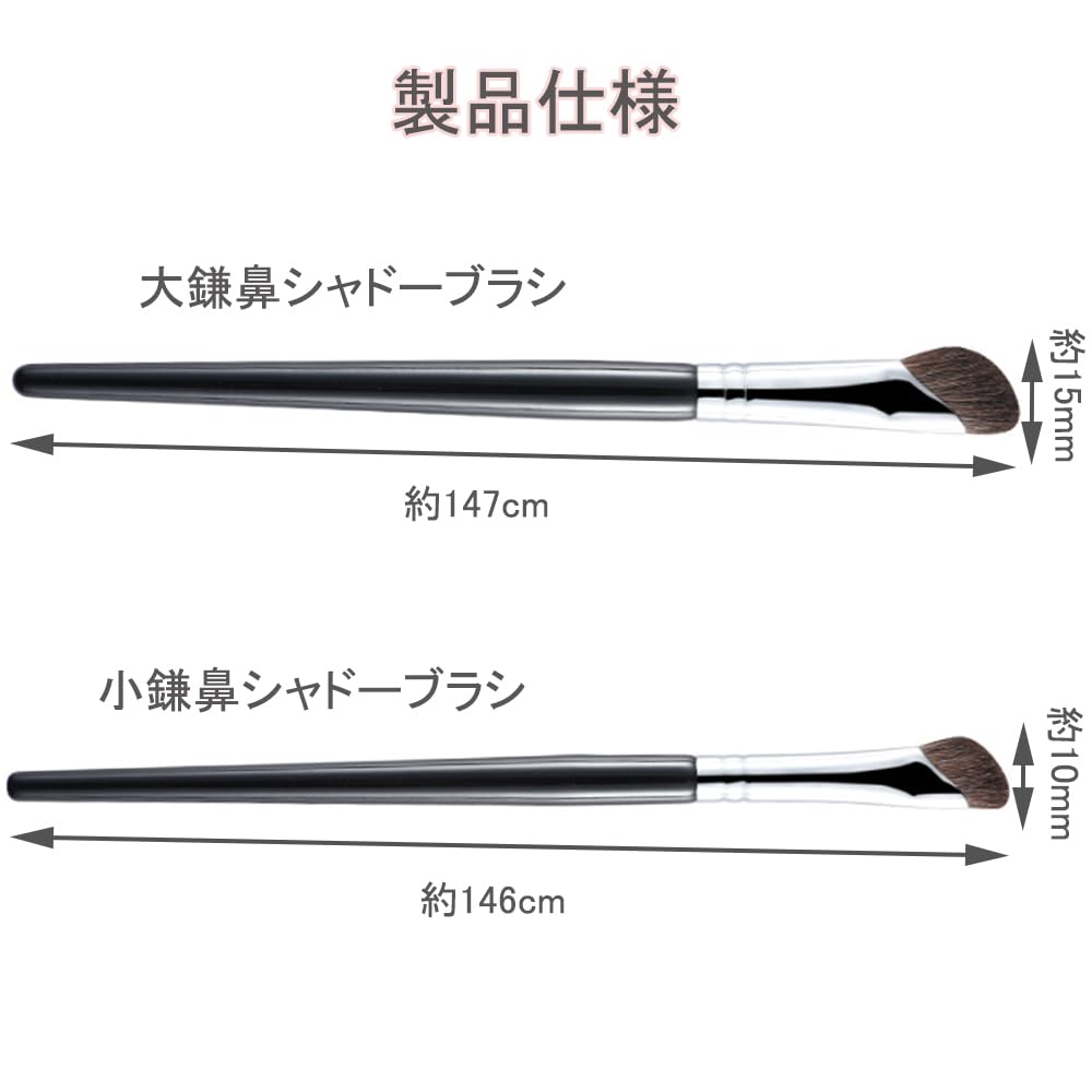 【パッケージ内容】ノーズシャドウ ブラシ 2本入り。大きい鼻影ブラシは長さ約14.7cm、小さい鼻影ブラシは長さ約14.6cmです。 異なるシェーディングニーズ。