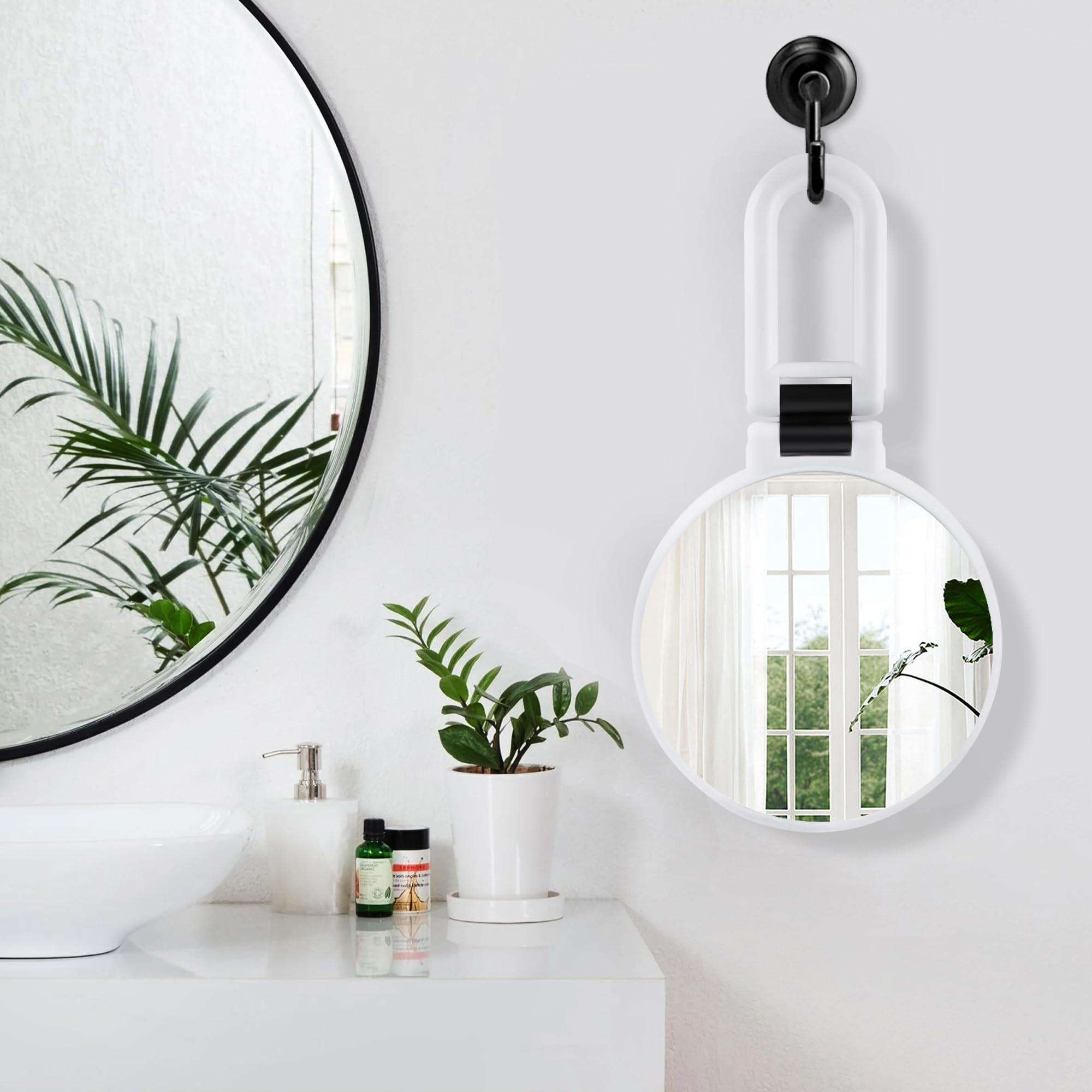 【30倍拡大鏡と平面鏡】手鏡は両面鏡で、1倍は日常使いの通常の高解像度反射鏡、30倍はコンタクトレンズ装着時や眉毛のトリミング、アイラインなど細かい作業が必要な場合に使用できる。 注:30倍の倍率は非常に強力ですので、はっきり見えるようになるまで、拡大鏡に約7-12cm顔を近づけてください。