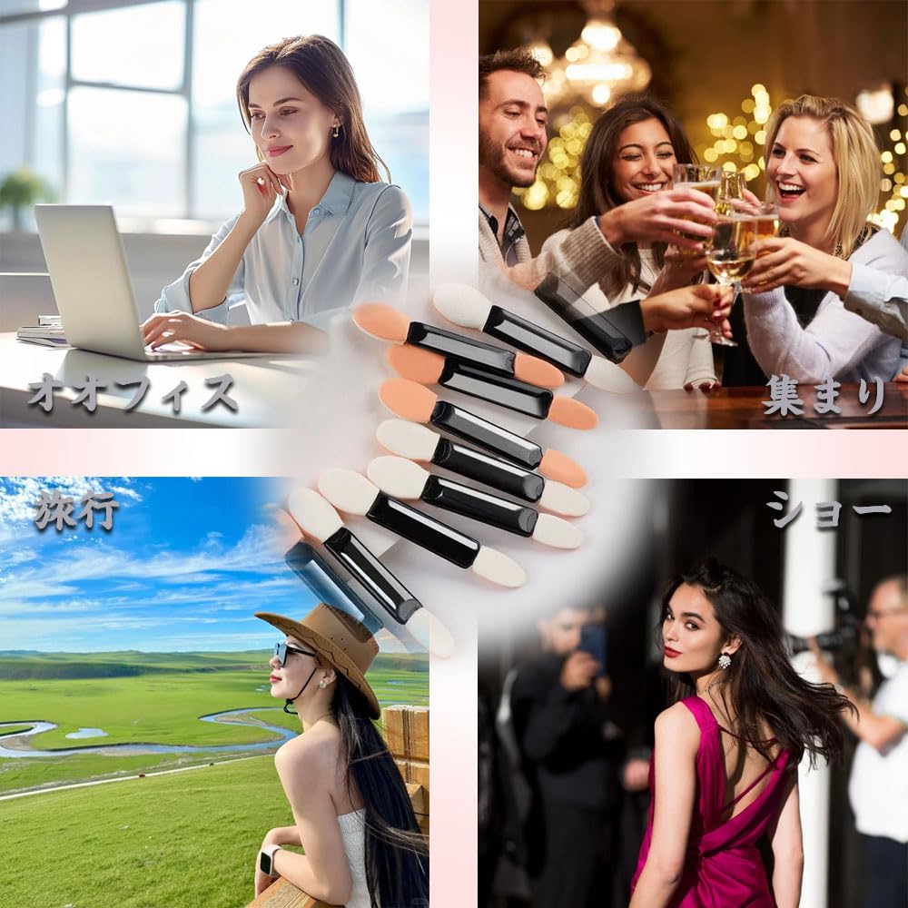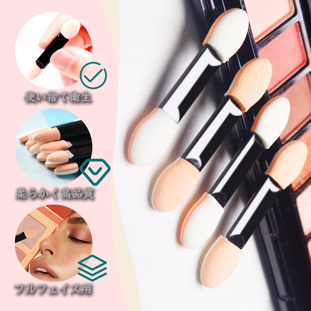 アイシャドウブラシ メイクブラシ アイシャドウちっぷ 化粧ツール メイクブラシ ダブル スポンジチッアイシャドウチップ プ 使い捨て 携帯便利 業務用 化粧 出張 旅行 ディスポ 50本入り