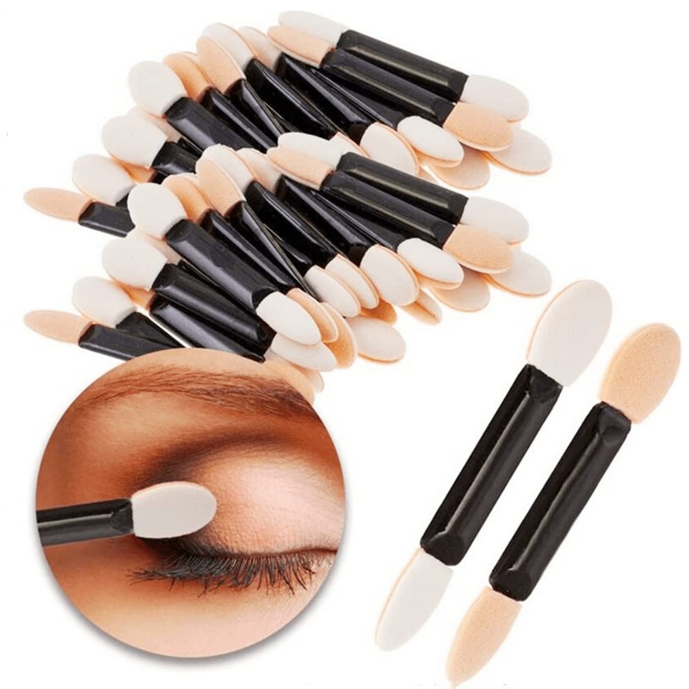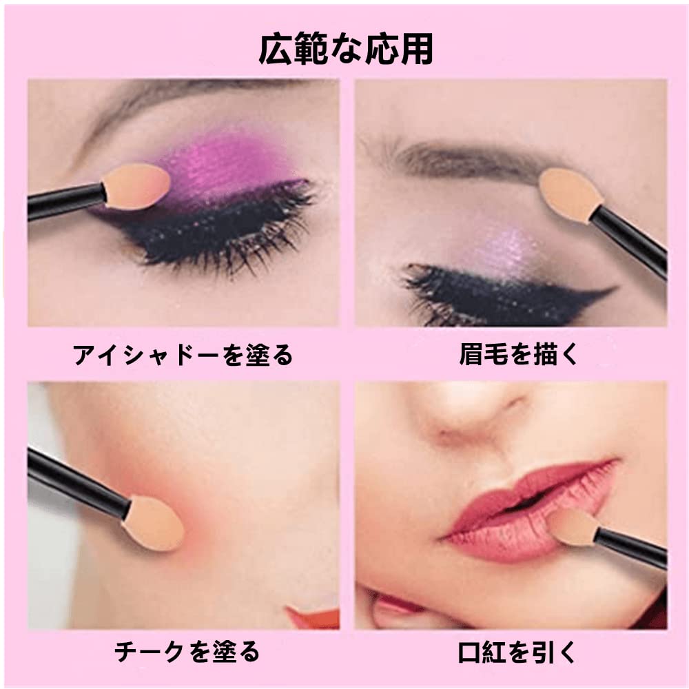 アイシャドウ ブラシ スポンジチップ 使い捨て ダブル アイシャドウブラシ 100本入り 化粧ツール 携帯便利