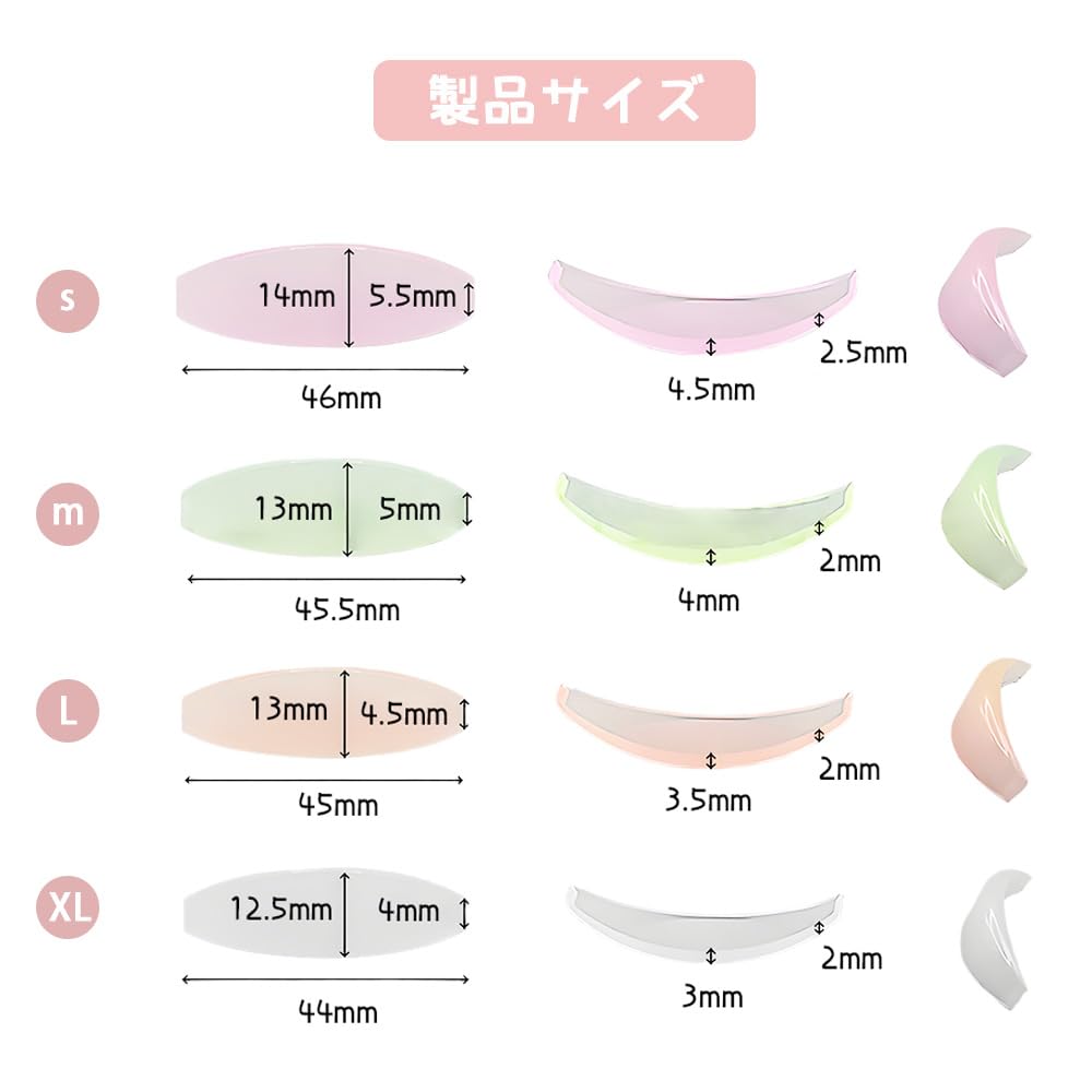 1.【充実のセット内容】】まつ毛パーマ用シリコンパッド8枚セット(Sサイズ2枚、Mサイズ2枚、Lサイズ2枚)。無臭のシリカゲル素材で作られ、快適に使用可能。 2.【自然なリフトアップ効果】従来のパーマロッドと違い、ナチュラルなカールではなく、根元からまつ毛を持ち上げてリフトアップし、より長く・濃く見せる効果を実現。 3.【幅広い目の形に対応】ほとんどの目の形にフィットしやすく、自分用はもちろん、家族や友人ともシェア可能。まつ毛が均一にリフトされ、綺麗な仕上がりをサポート。 4.【繰り返し使える高品質パッド】シリコン製でお手入れが簡単。使用後は生理食塩水で拭き取るだけで再利用可能。サロン用だけでなく、自宅でのセルフまつ毛パーマにも最適。 5.【3サイズ展開で理想のカールを実現】S/M/Lの3サイズが揃っており、希望のカール具合に合わせて選べる。施術が簡単になり、より綺麗なまつ毛パーマが可能に。