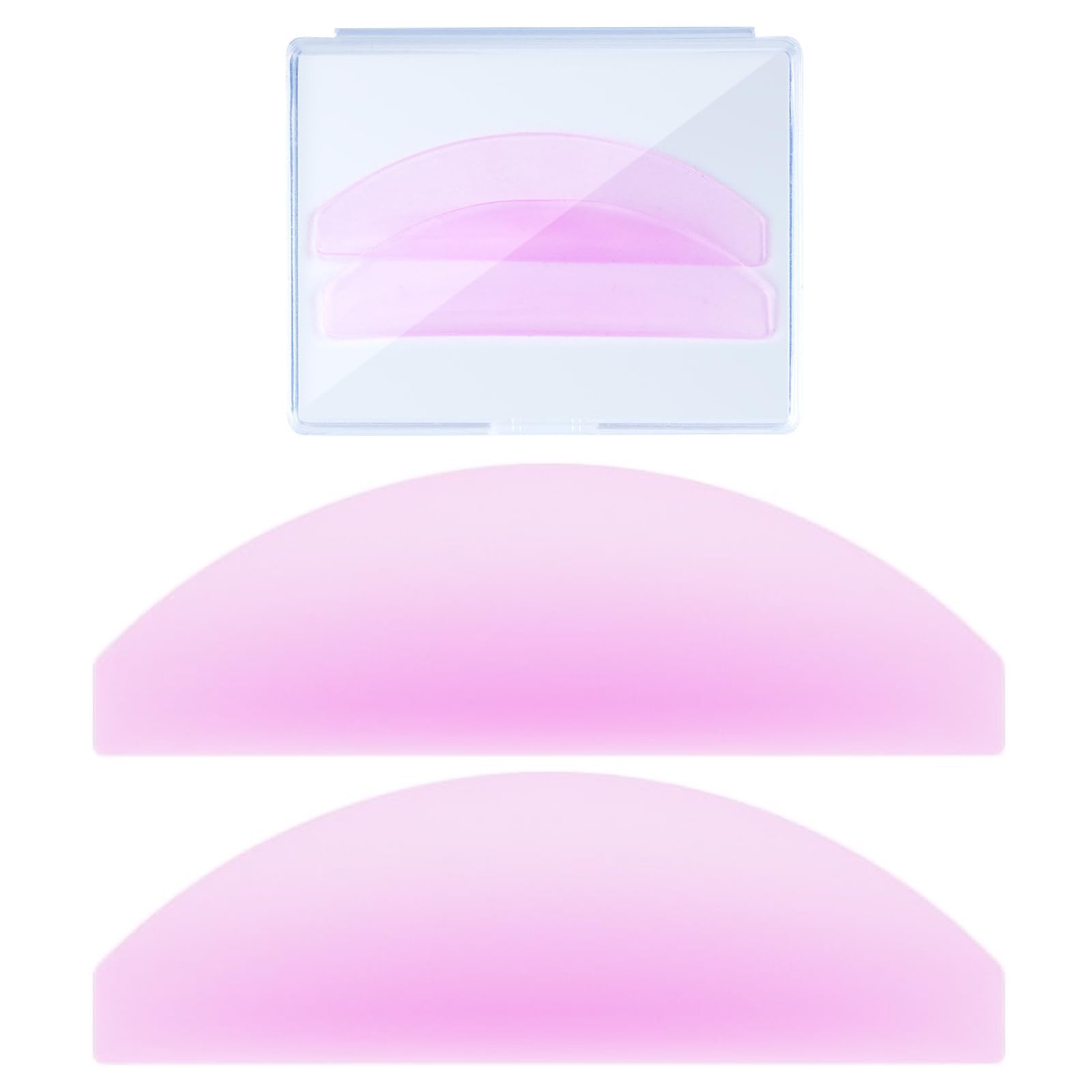 【仕様】:まつげリフトシリカゲルマット1セット(全2枚)、色はピンク、サイズは5×2.1×0.1cm、透明収納ケースが付属。