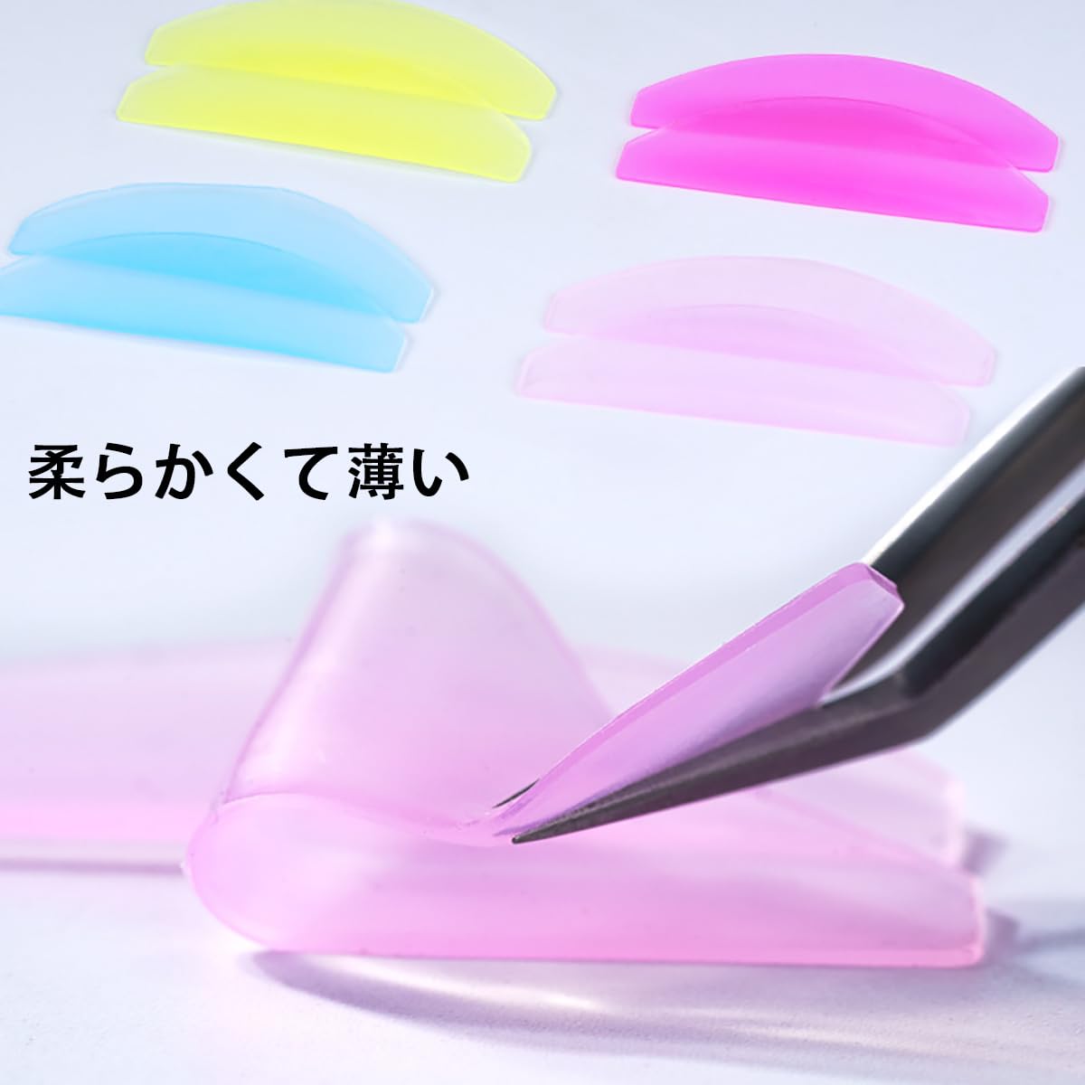 【まつげ専用ソフトマット】:この極薄まつげソフトマットはまつげをソフト化する時に使用して、まつげをソフト化する過程でまつげを固定する役割を果たして、極薄超軽量の質感、使用感は非常に快適である。