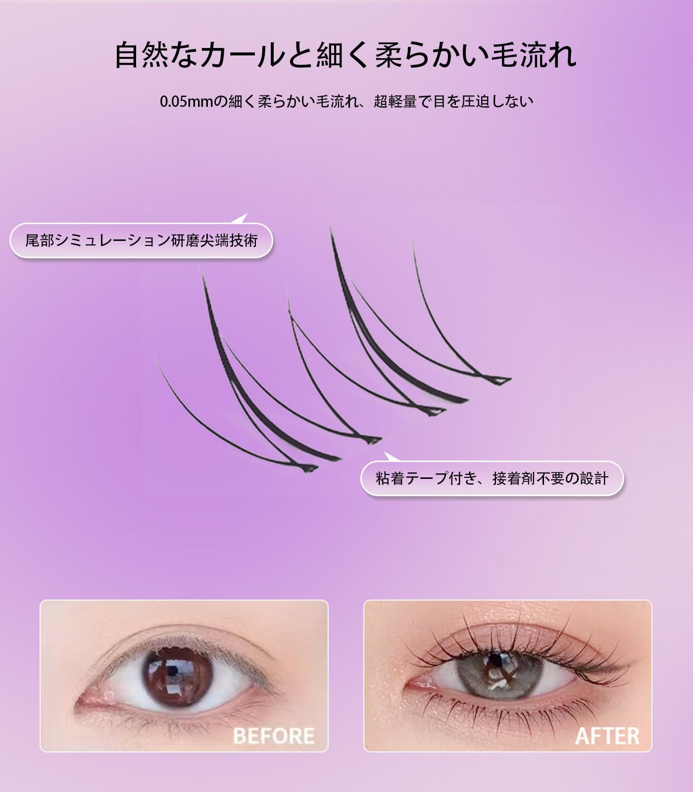 【柔らかく快適なつけまつ毛】厳選された高品質素材で、軽やかで自然な装着感。着用後の快適さを実感し、魅力的な目元で自信を持ちましょう