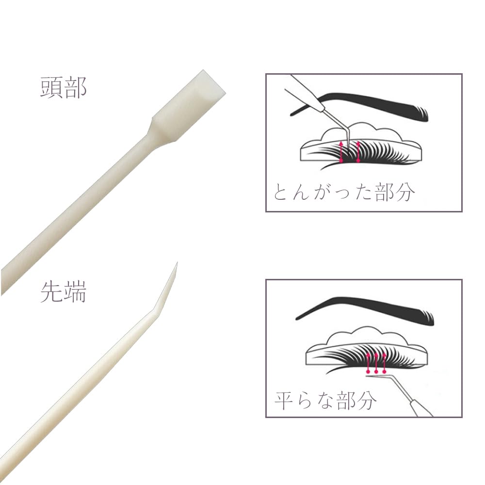 【使用便利】細くデリケートなまつ毛の毛先は、角度の付いた先端できれいに整えることができます。棒の反対側は平らな形状で、溶剤の混合や塗布に便利です。