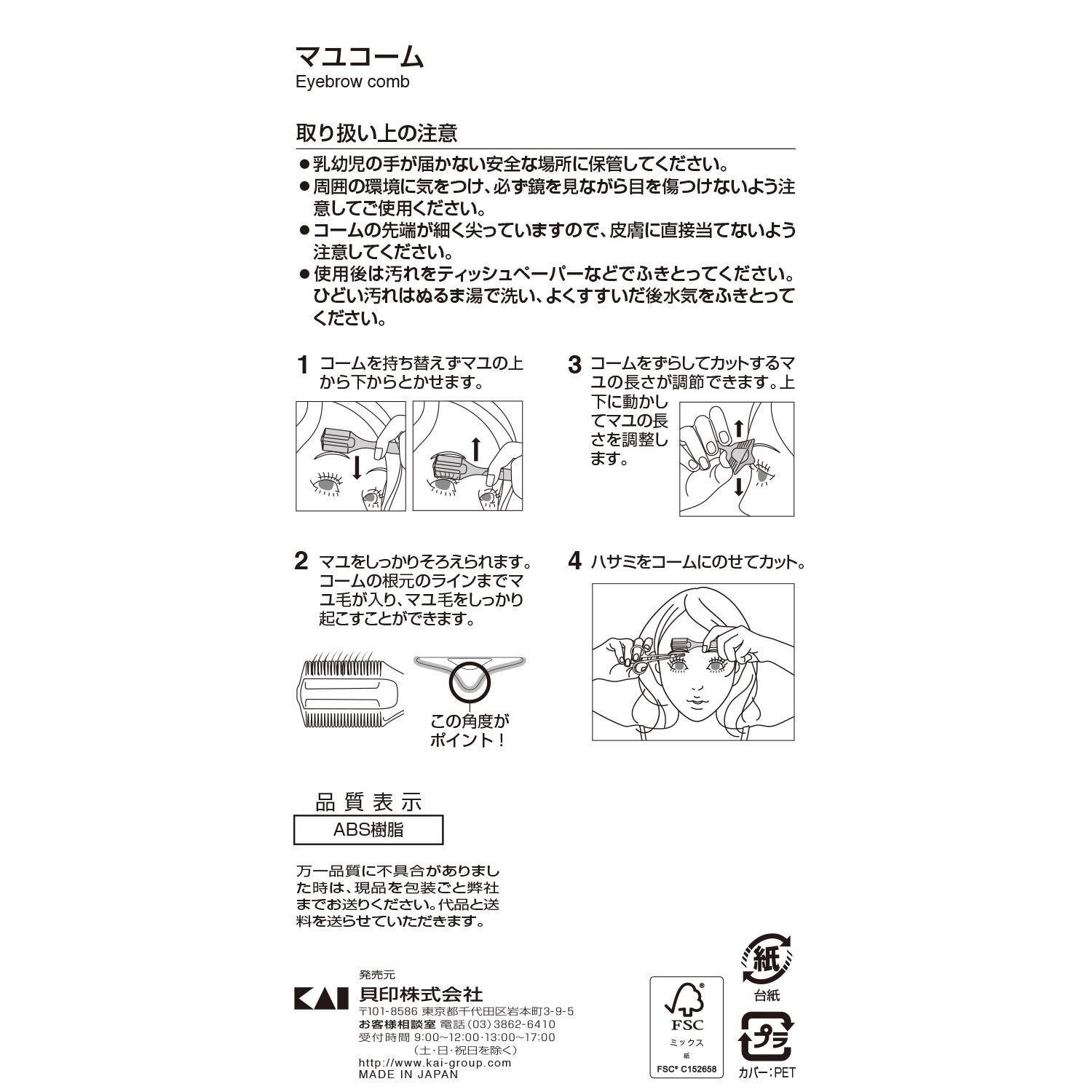 【特価】貝印 マユコーム マユ用コーム 眉用コーム 1個 (x 1)