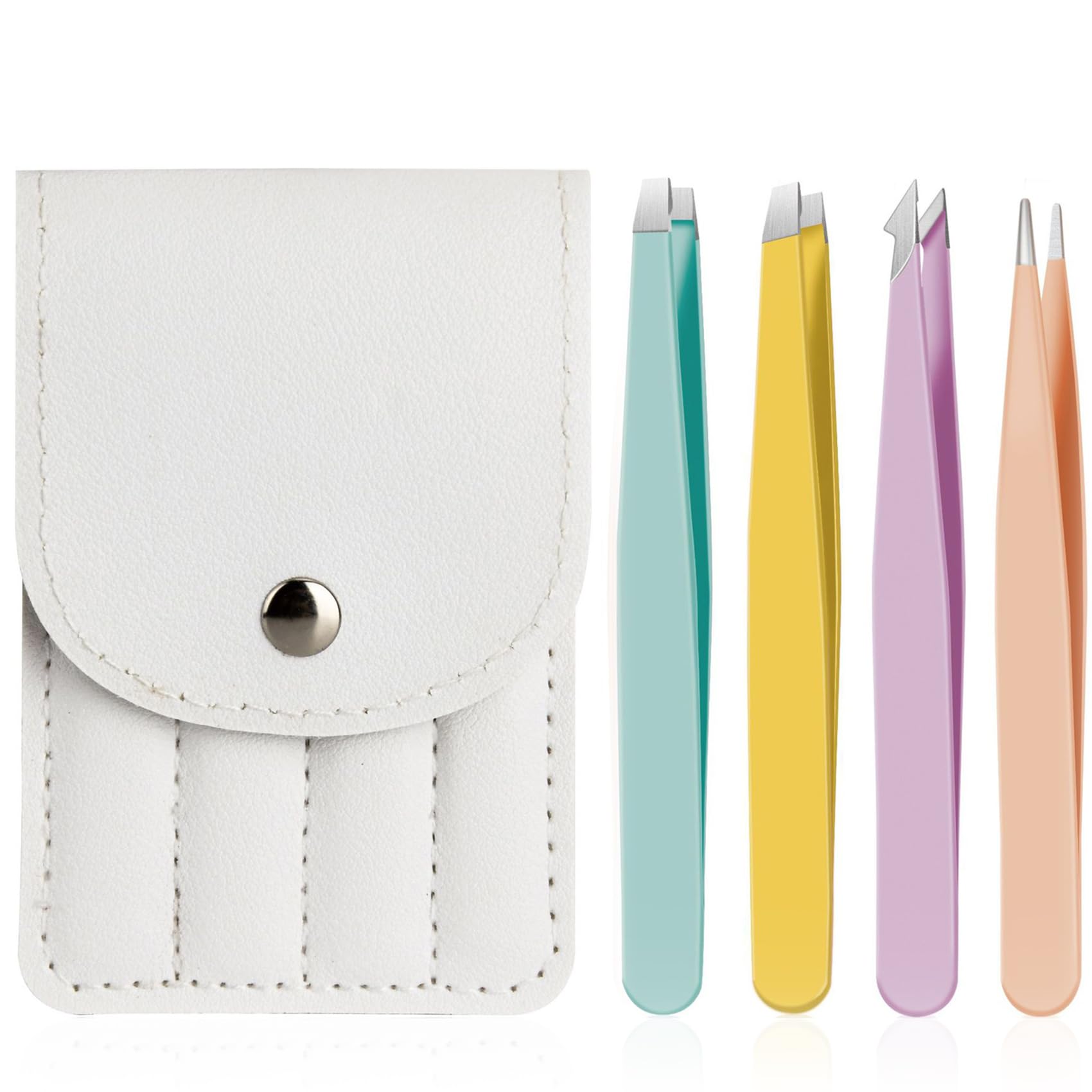 毛抜き 4本セット精密 ピンセット ステンレス製 先斜め 先細 平タイプ コスメピンセット 脱毛 眉毛処理 角栓取り 耳毛処理 鼻毛 ヒゲ レザーケース付き