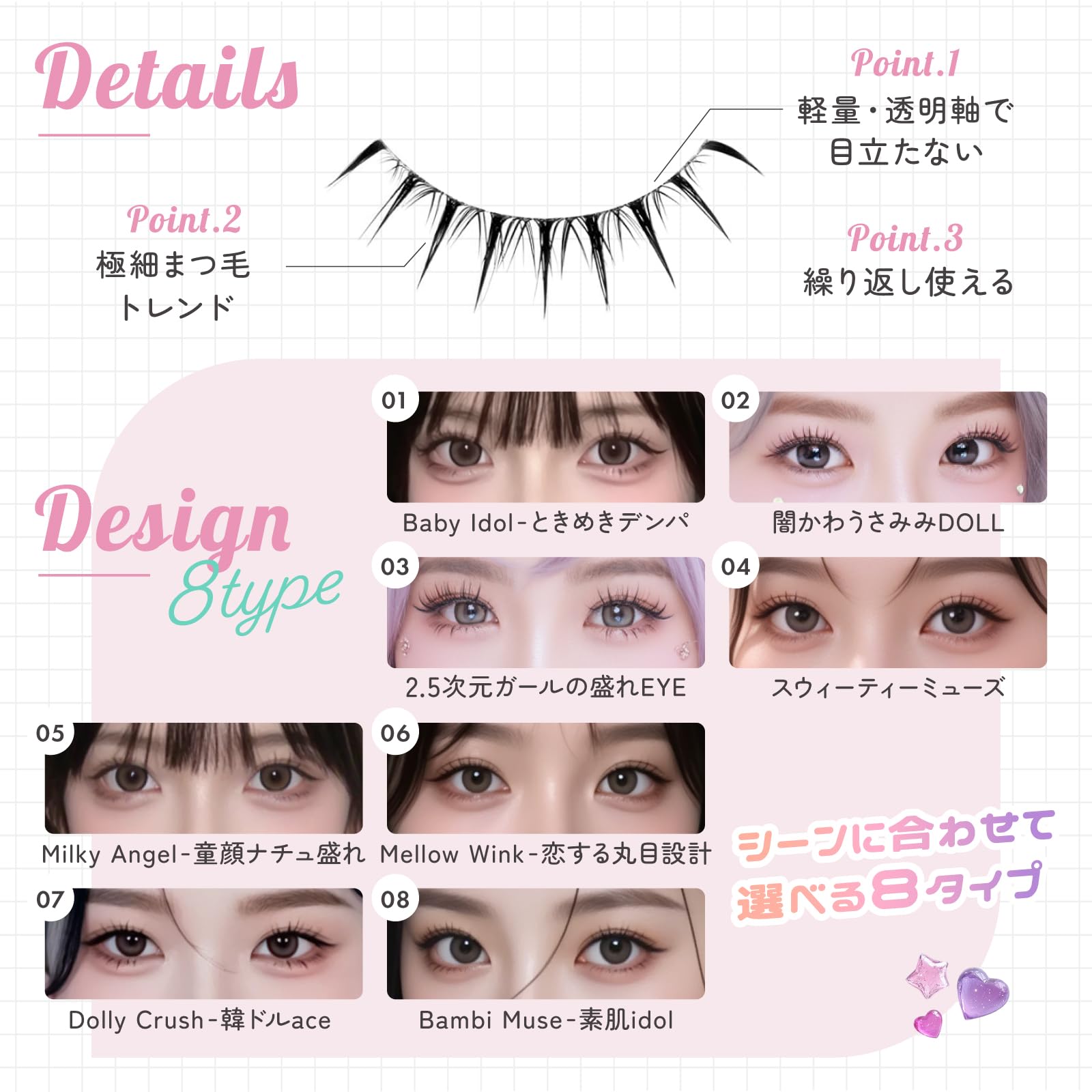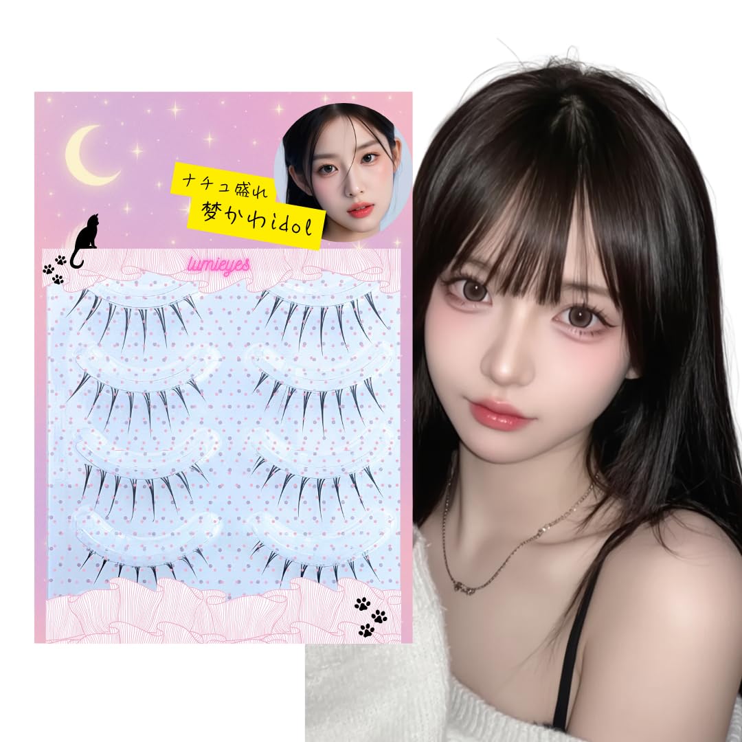 つけまつげ 【Lumieyes Dream Eyedoll】 ナチュラル盛れ透明感上まつげ 【アイドルワンホンシリーズ5ペア入り】 短め かわいい 目尻 したまつげ 人気 手作り 女優まつげ コスプレメイク地雷系 (01Baby Idol-ときめきデンパ)