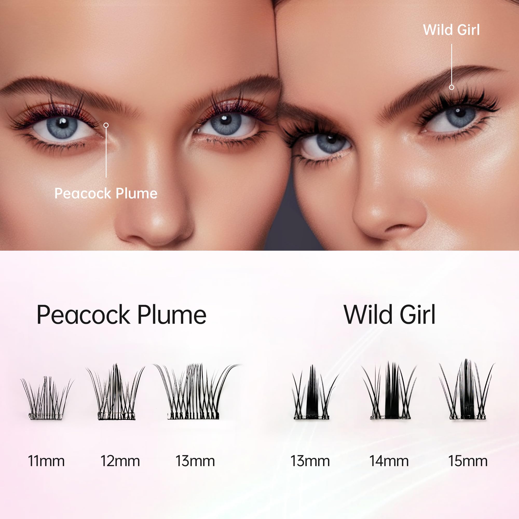【Doll感アップ】中央部分は長くて太めの毛と横は短くナチュラルな毛にMIXして、黒目を自然に強調します。小悪魔風でハーフのようなメイクに仕上がります。違和感がない目力をアップさせ、目元にキラっとした輝きます。
