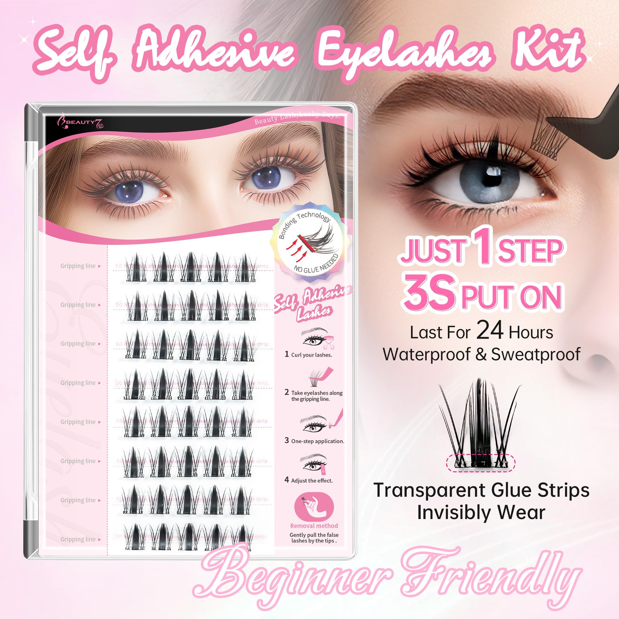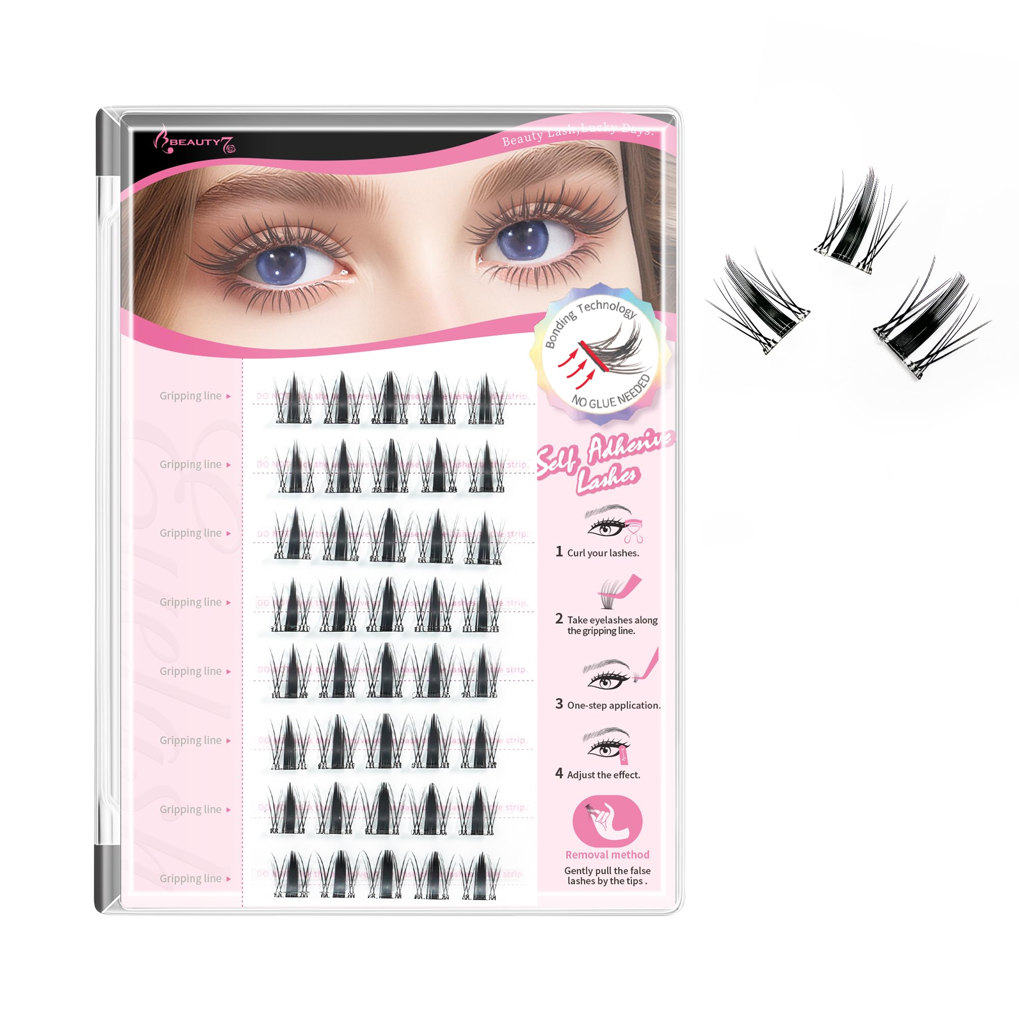Beauty7 つけまつげ のり不要 40束 グルーいらず 部分つけまつげ 接着剤不要 一秒マツエク 付けまつげ 自粘着つけまつげ ナチュラル 透明軸 上まつげ 短め 柔らかく 目尻 可愛い 自然な束感 再利用可能 手作り コスプレメイク 初心者で簡単装着 (Wild Girl)