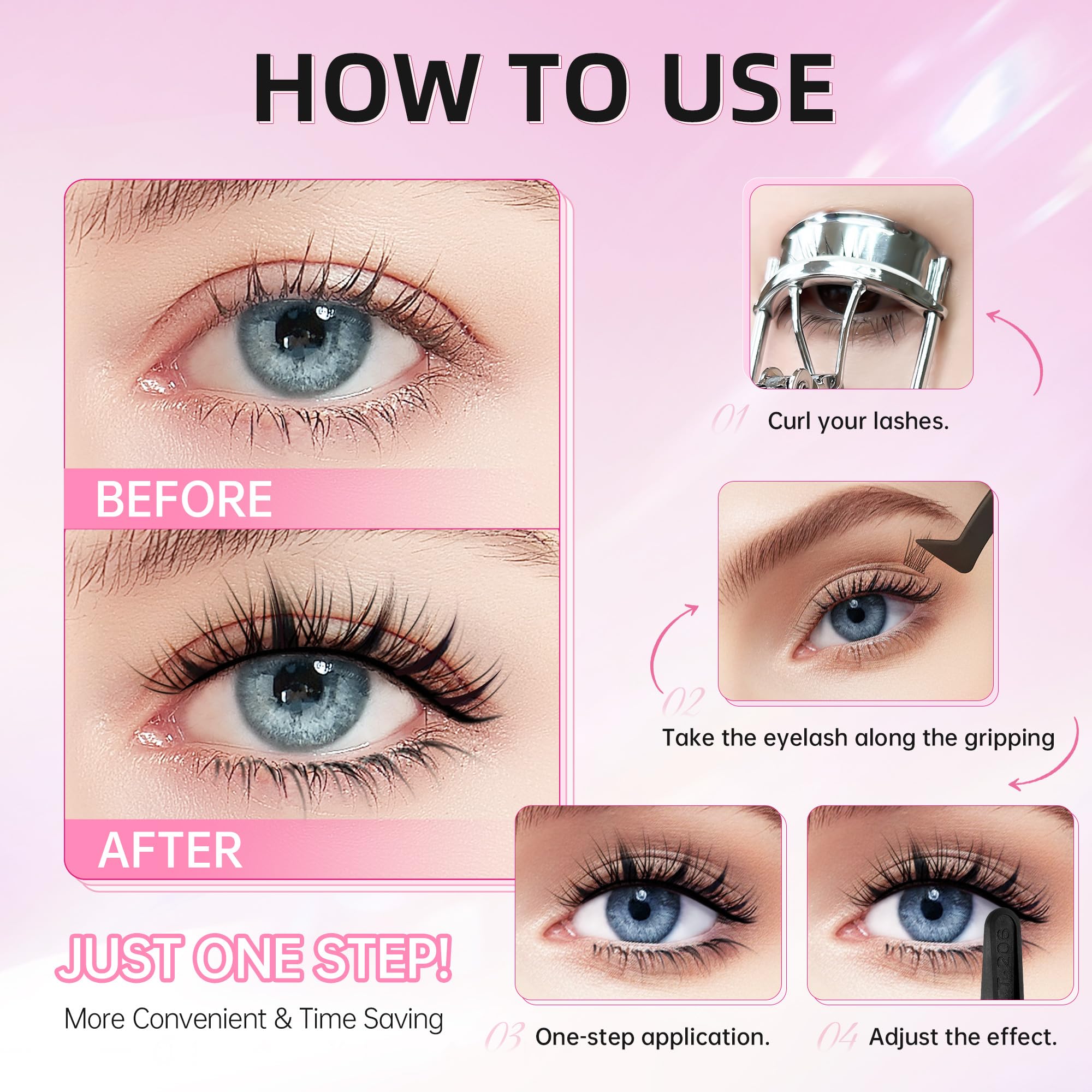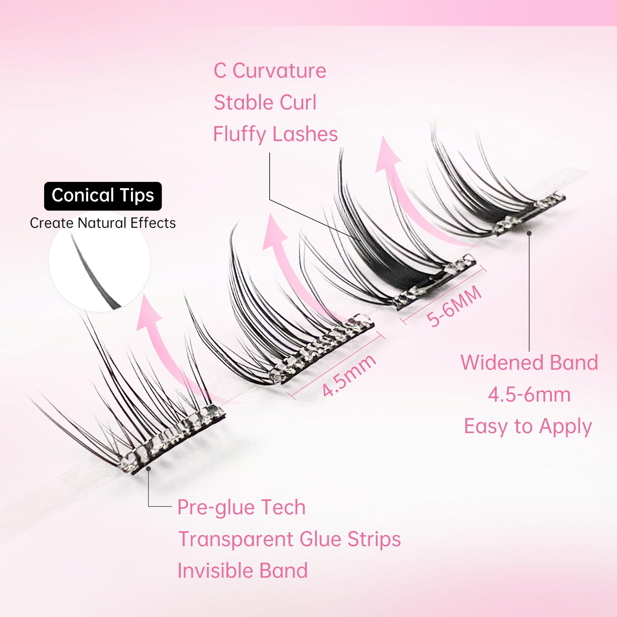 【羽のように軽いつけまつげ】高品質な材料を採用し、超軽量で羽のような感じ!付けていることを忘れるくらいの心地よさで、長時間つけていても全然疲れません。尖った毛先で自まつ毛っぽくて、自然に目を大きく見せます。