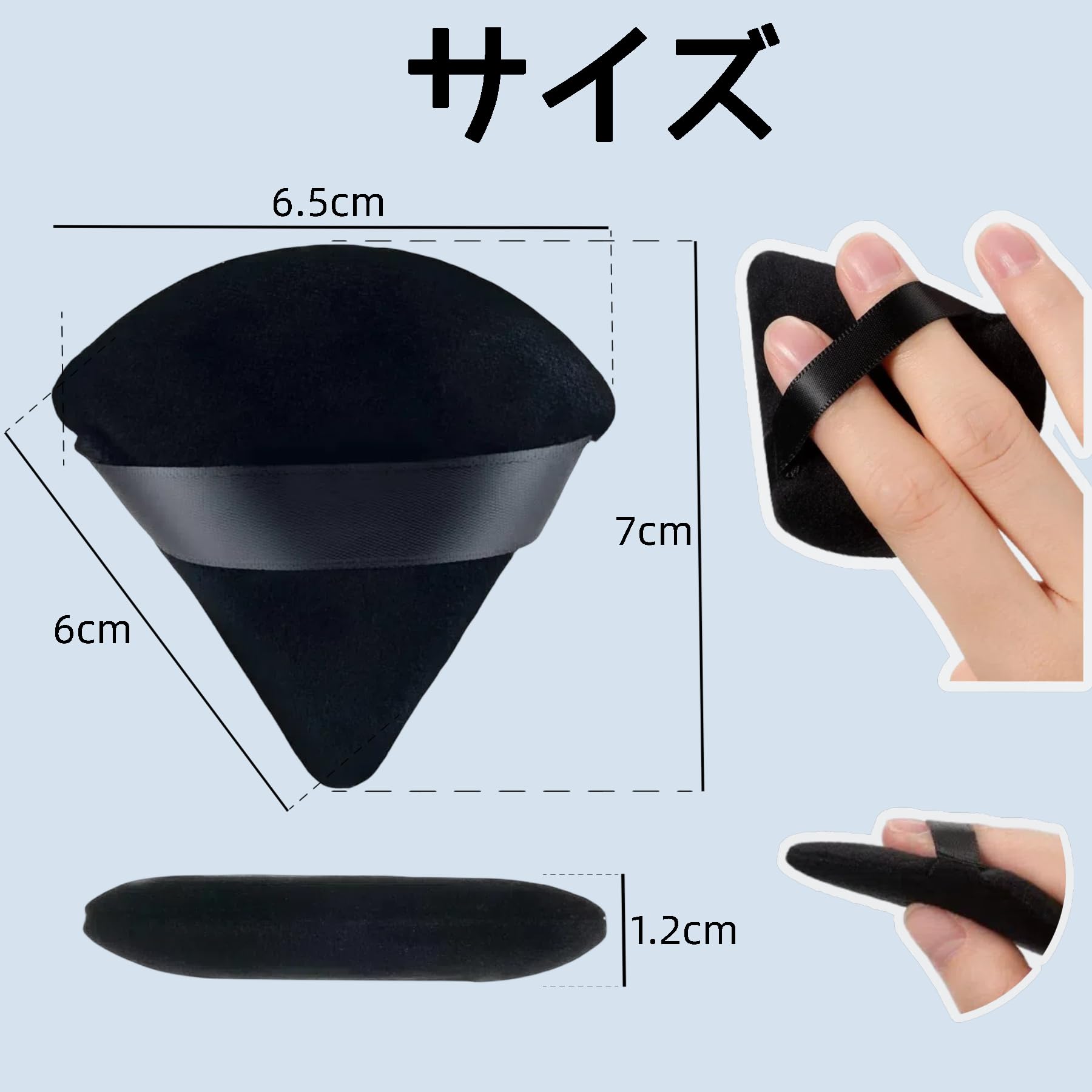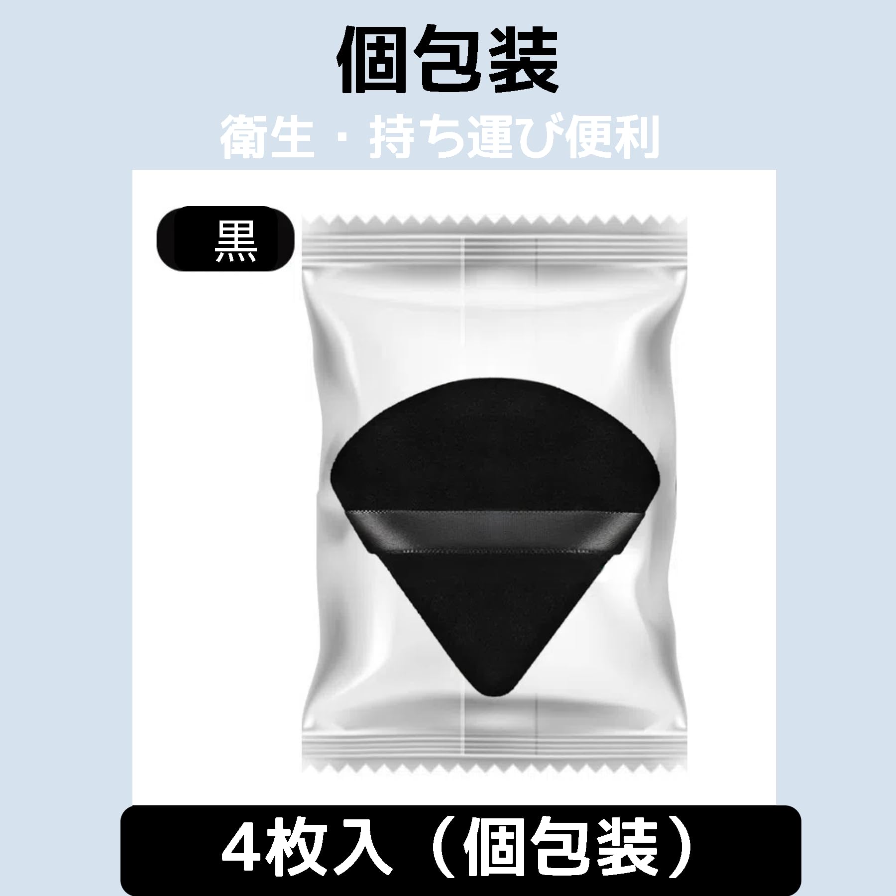 【仕様】サイズ:幅6.5cm×長さ7cm 内容量:三角黒パフ4個入れ