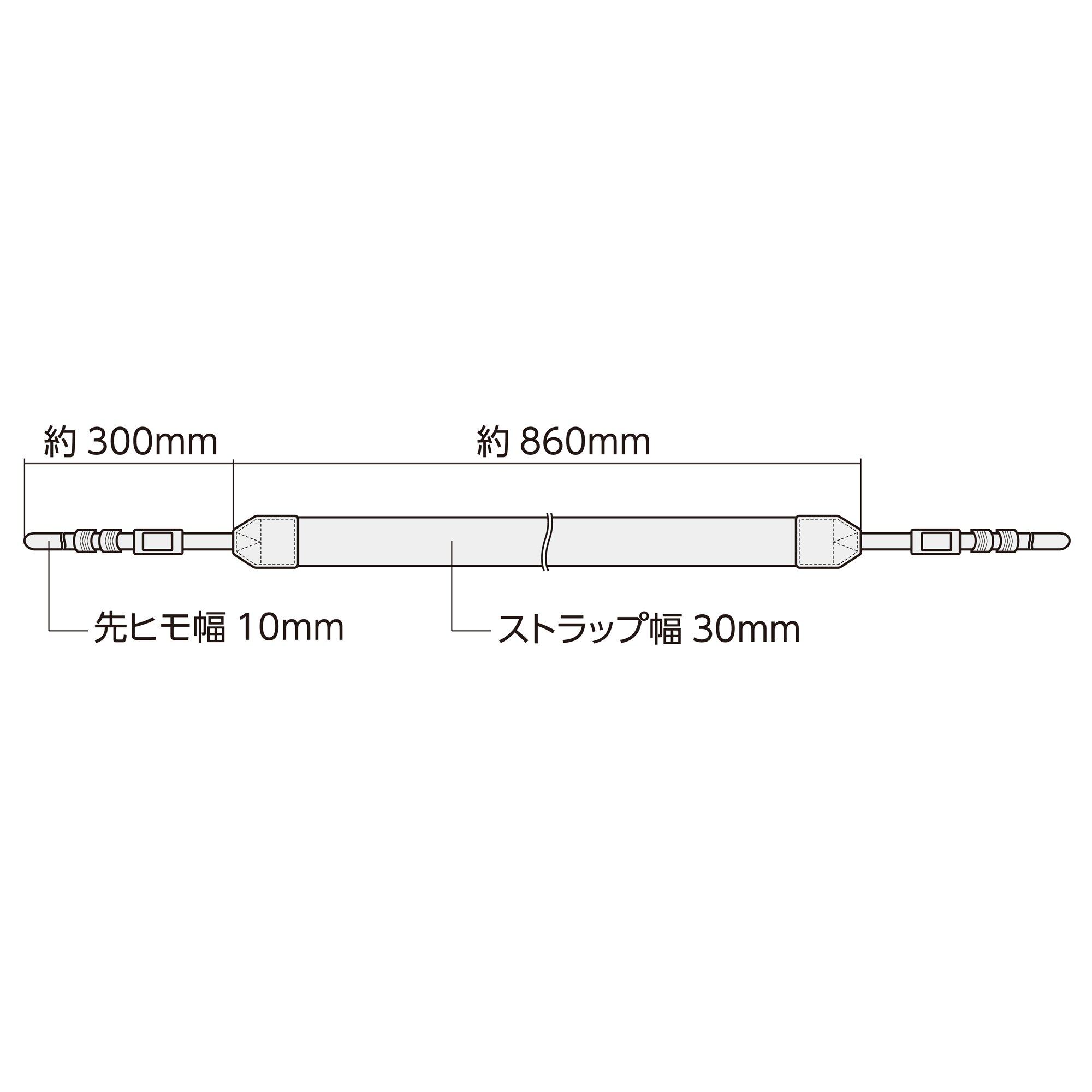 首掛けも斜め掛けも可能な長さに調整可能。肩や首に触れる幅広ベルト部分は長さが約860mmあるのでどのような掛け方でも重さを分散します。