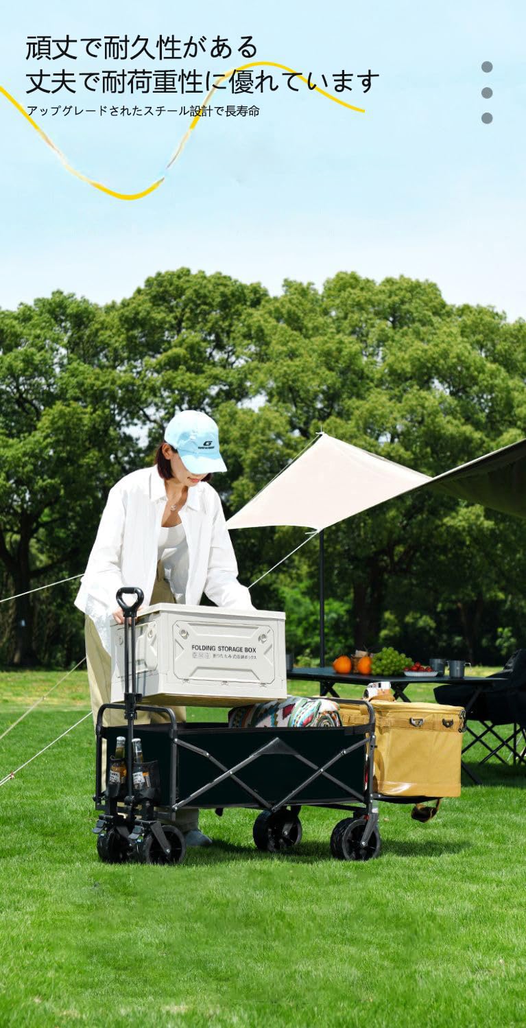 キャリーワゴン 大容量120L 耐荷重120kg アウトドアワゴン 折り畳み式キャンプカート ワンタッチ収束式 自立収納 静音 ブレーキ付き 収納 キャンプ/砂浜/釣り/引越し/買い物/ゴミ出し