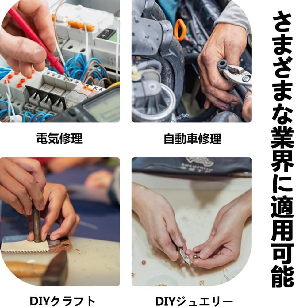 携帯性:コンパクトなサイズ(21cm)と軽量設計(230g)により、工具バッグへの収納や持ち運びが容易で、自動車整備工場だけでなく緊急車両修理現場など多様なシーンで即座に使用できます。