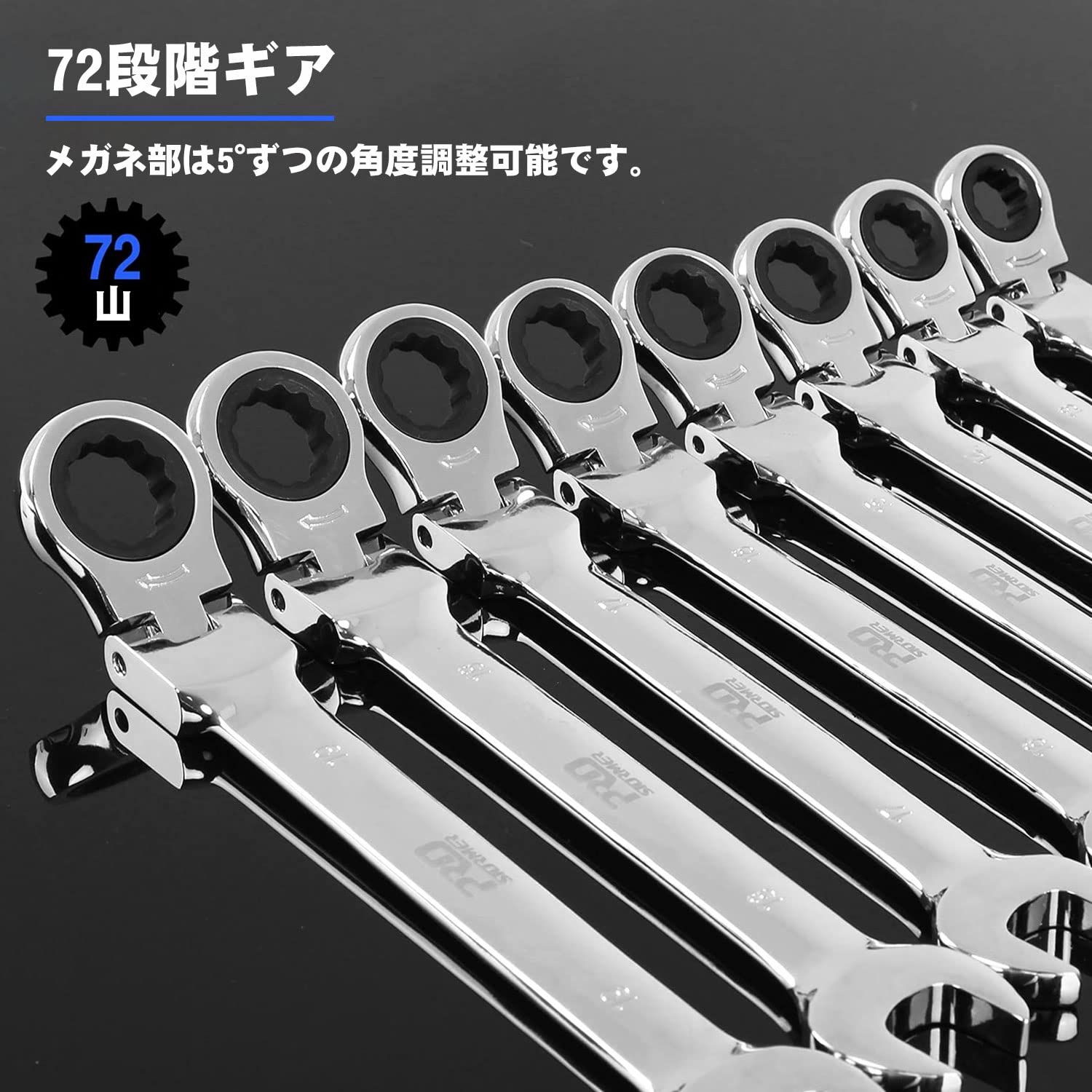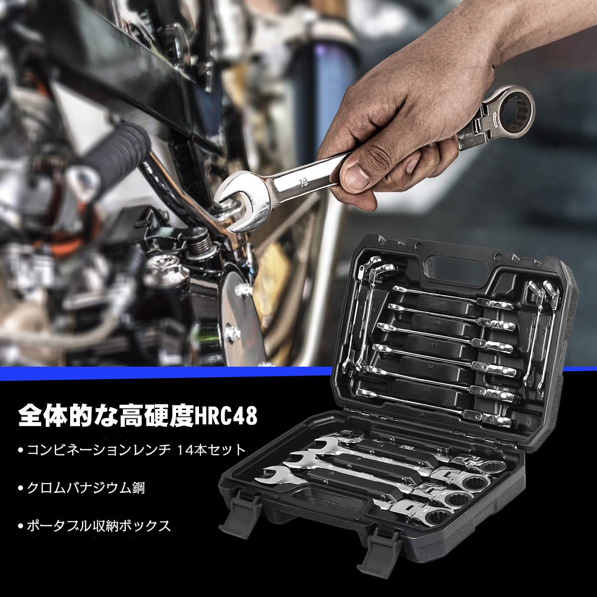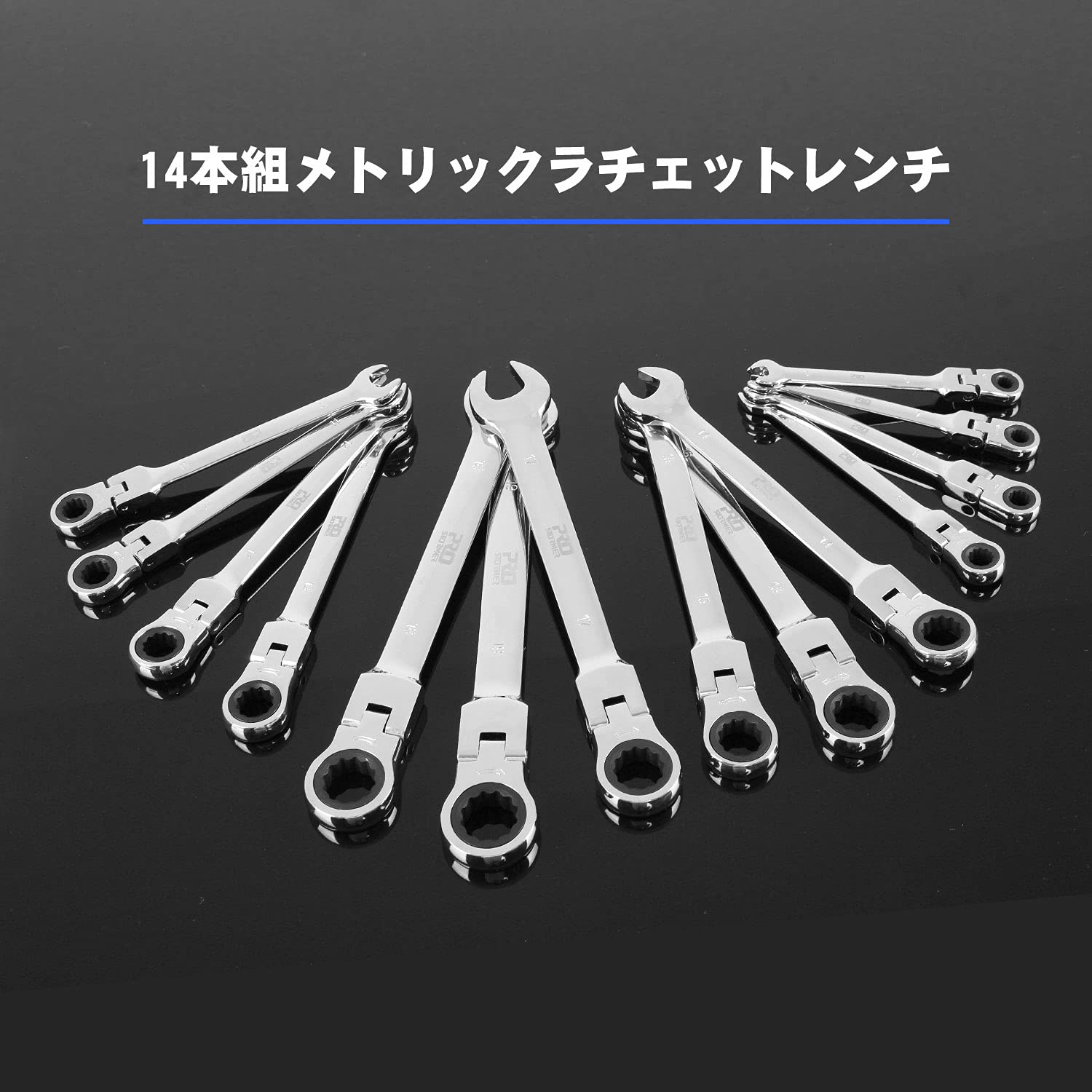 サイズ:72ギアラチェットコンビネーションレンチセット。14本セットサイズ:6mm、7mm、8mm、9mm、10mm、11mm、12mm、13mm、14mm、15mm、16mm、17mm、18mm、19mm