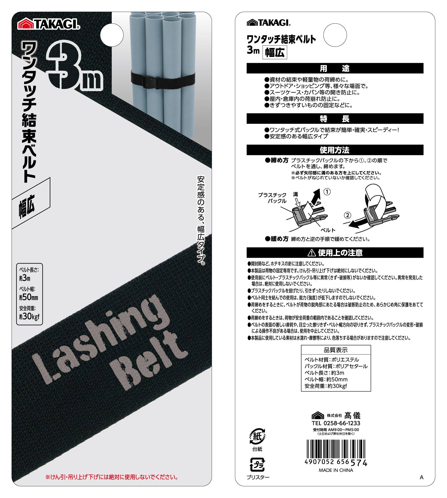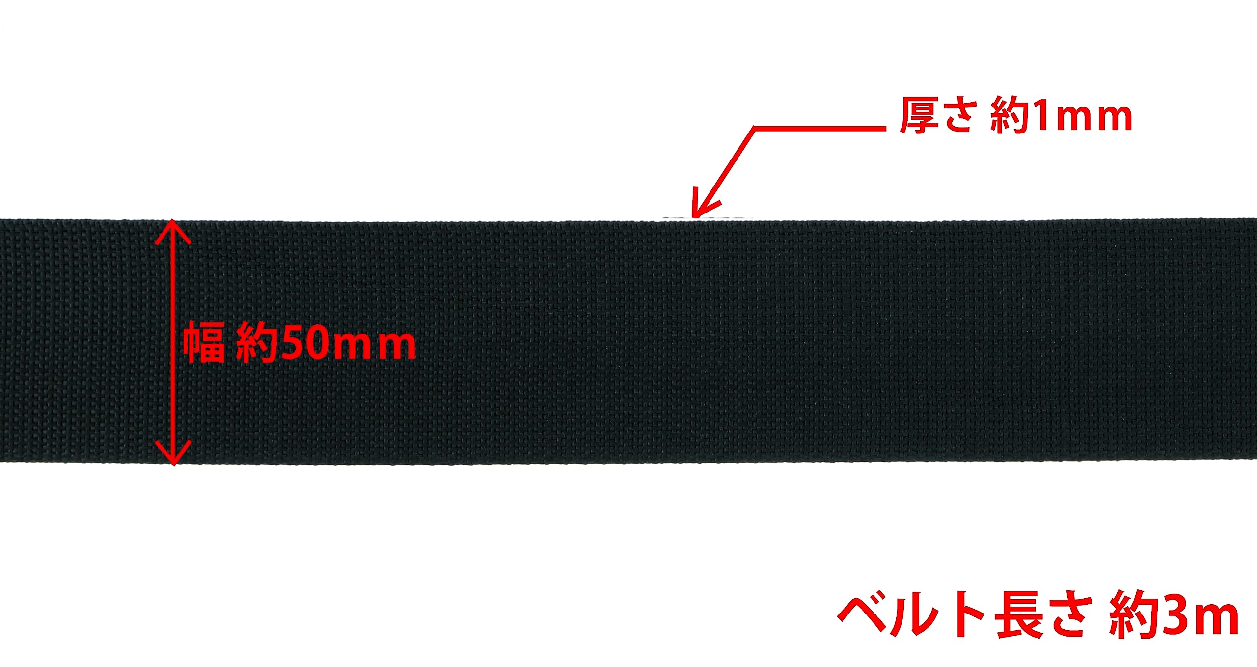 ベルト長さ:約3m、ベルト幅:約50mm、安全荷重:約30kgf