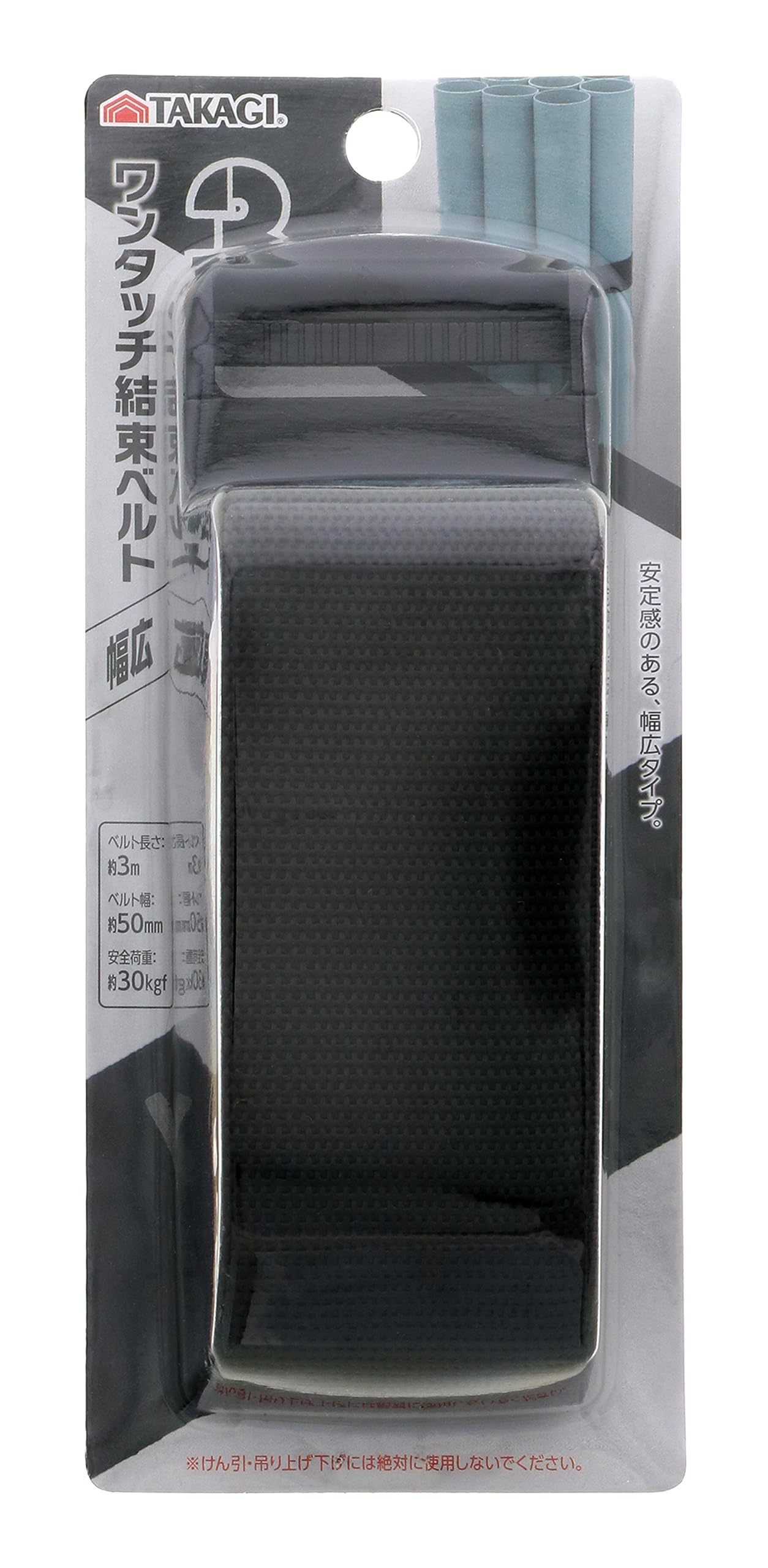 高儀(Takagi) ワンタッチ 結束ベルト 3m 幅広 ブラック 荷締めベルト 荷締バンド ラッシングベルト 多用途 固定ベルト 結束バンド 梱包 ベルト 固定バンド バックル 荷締め 黒 (× 5)