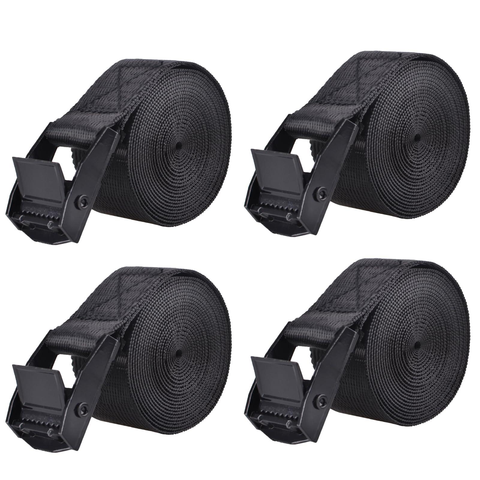 Azarxis 荷締めベルト 固定ベルト 荷締め ベルト 2m 3m 5m 荷物ベルト ラッシングベルト 荷締バンド 締付 運搬 梱包 積載 荷締機 荷台 荷崩れ防止 地震災害対策 幅25mm 4本セット(A - ブラック, 2m)