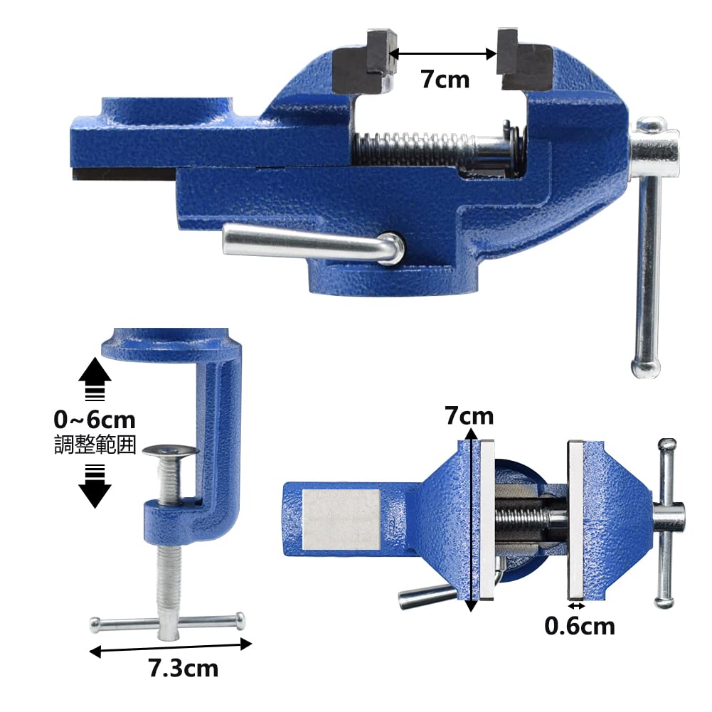 万力 卓上 回転式 口幅約70mm 最大開口約75mm 小型卓上万力360°回転盤クランプ部開口0~65mm 回転 切削 研磨 切断 加工 固定 接着 強力 携帯用作業台 卓上 テーブル 締め 工具ホビーや日曜大工、工作などに最適