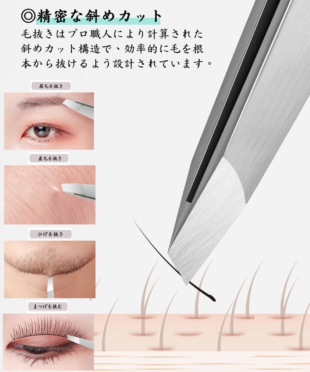 【新登場2本セット】精密ピンセット1本&毛抜き1本。サロン専用黒ずみ取り、プロ仕様の美容ツール、精密な作業に最適!先斜め毛抜きのノッチデザインは先端の幅を2.6mmに縮め、うぶ毛や短い毛はもちろんのこと、毛穴の角栓まで抜き取ってしまう精巧さ!