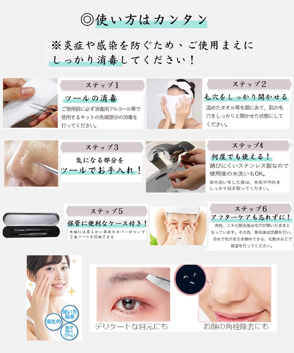 【パッケージ内容・】:極細の角栓ピンセット*1本、毛抜きピンセット*1本、収納ケース*1個。当店が高品質なアフターサービスを提供します、お買い上げいただいた製品に万が一不具合が発生した場合、お気軽にお問い合わせください。