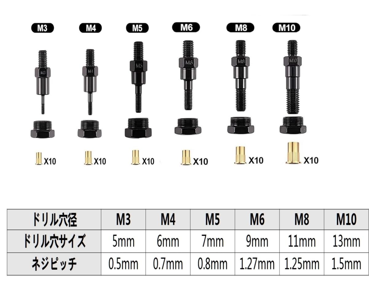 ハンドナッター ちょっとナッター リベットナット ハンドリベッターセット ブラインドナットが リベットセットインサート リベット工具 11個 (M4)