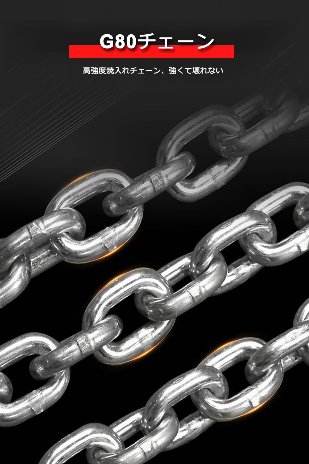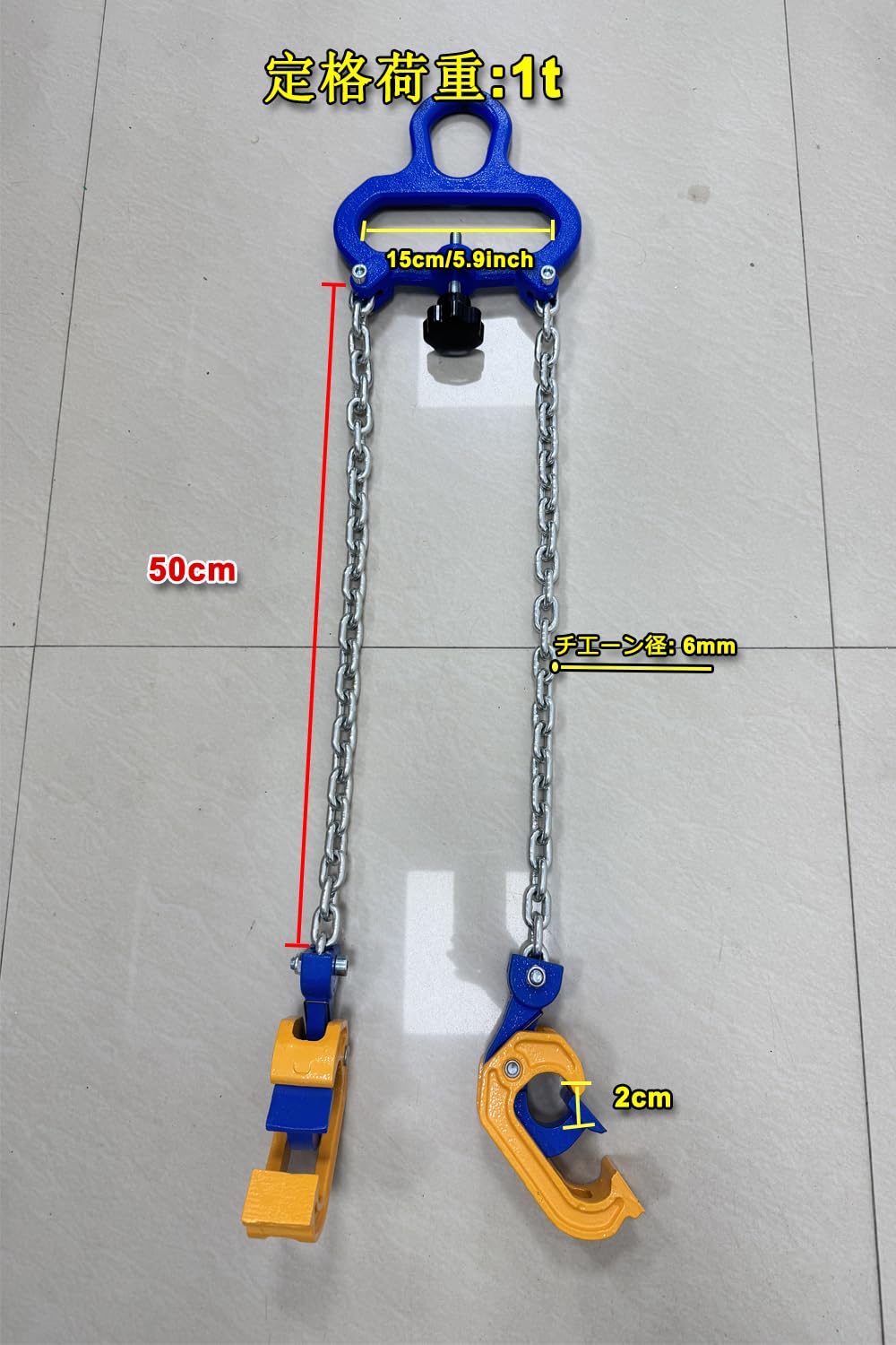 【耐荷重1tタイプ】材質:スチール 耐荷重:1トン 重量: 4.7KG チェーン線径:約6.0mm チェーン長さ:約500mm