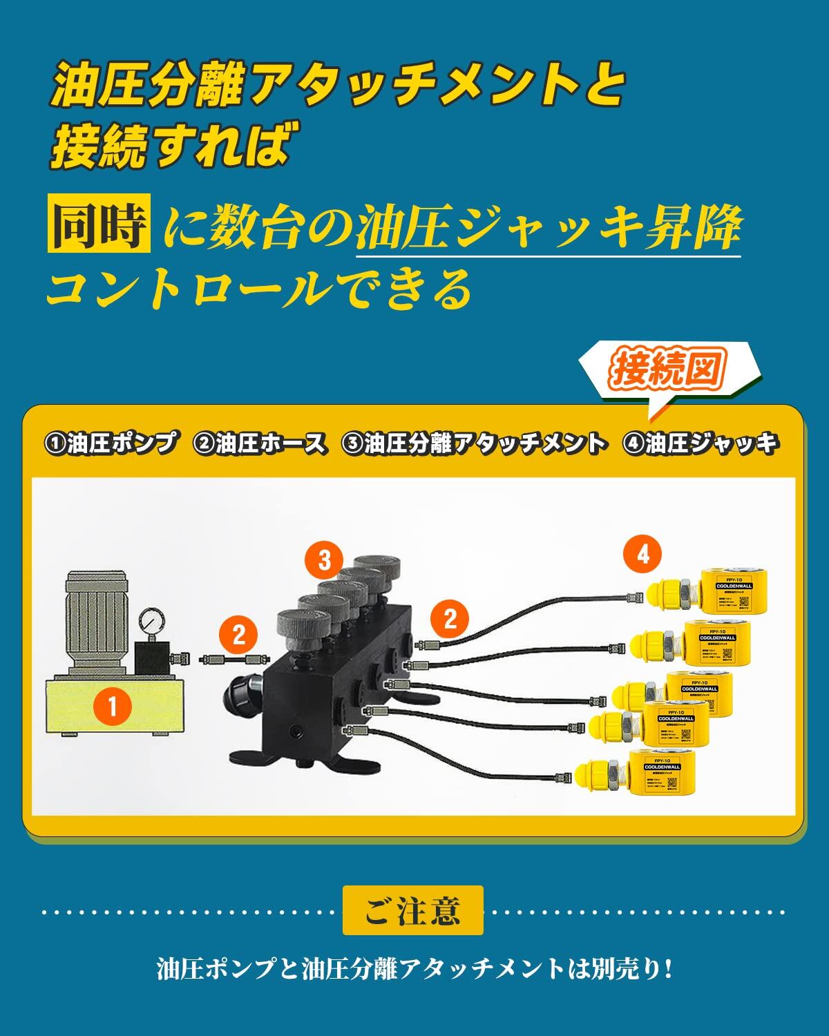 CGOLDENWALL 油圧ジャッキ小型 耐荷重5t、10t、20t、30t、50t、100t、150t狭いスペースの持ち上げ作業に最適 (10トン+ポンプ)