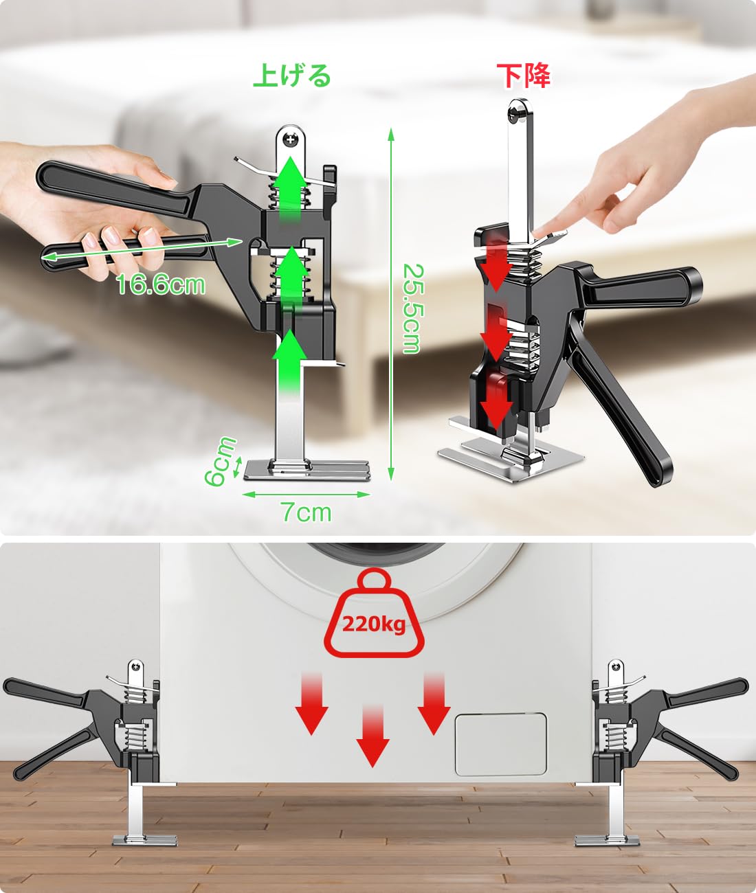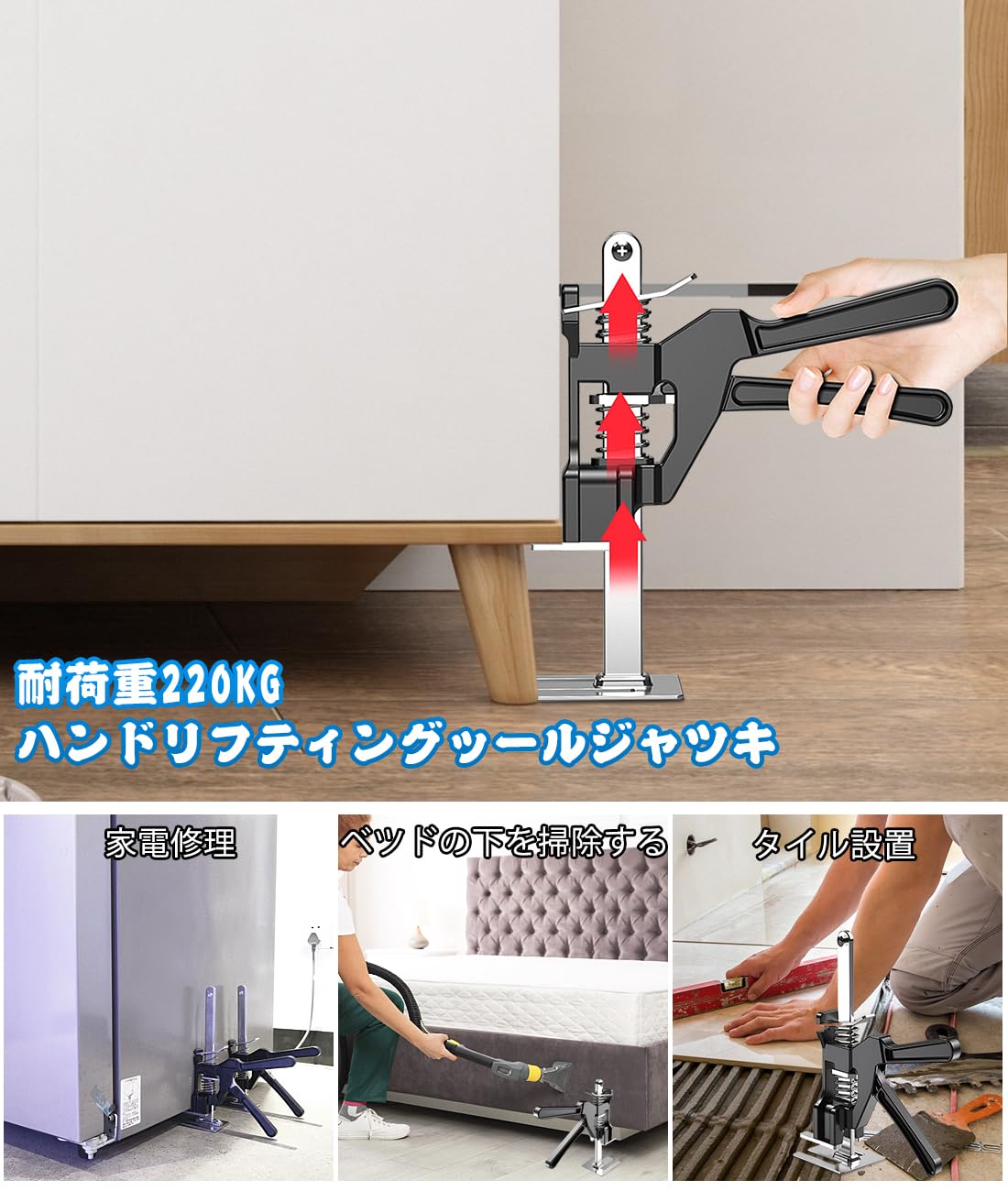 ジャッキスタンドツール ミニジャッキ ハンドジャッキ ハンドリフティングツール トレーラージャッキ 最大耐荷重220kg 重い物を持ち上げる道具 洗濯機、ドア、床の設置に使用 多機能 省力 修理用 木工作業 S45C(炭素構造鋼) 簡単な高さ調整 便利 安定 家具移動 プレゼント 2個入り