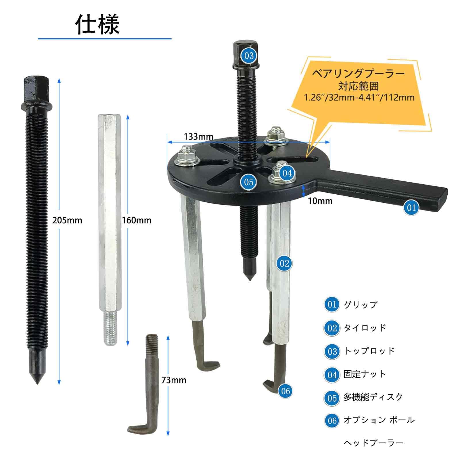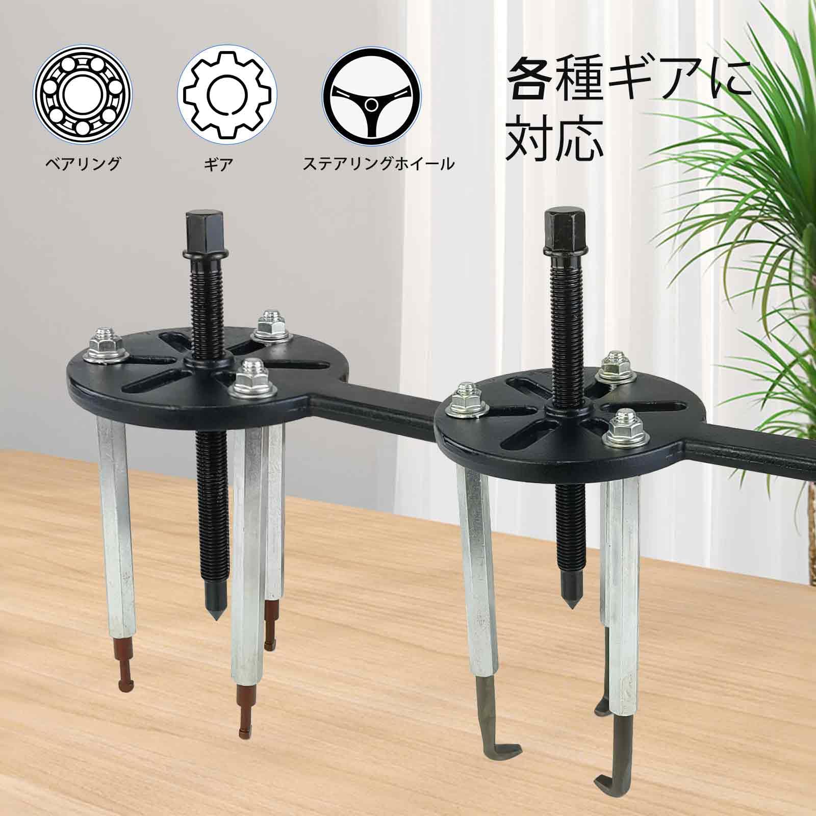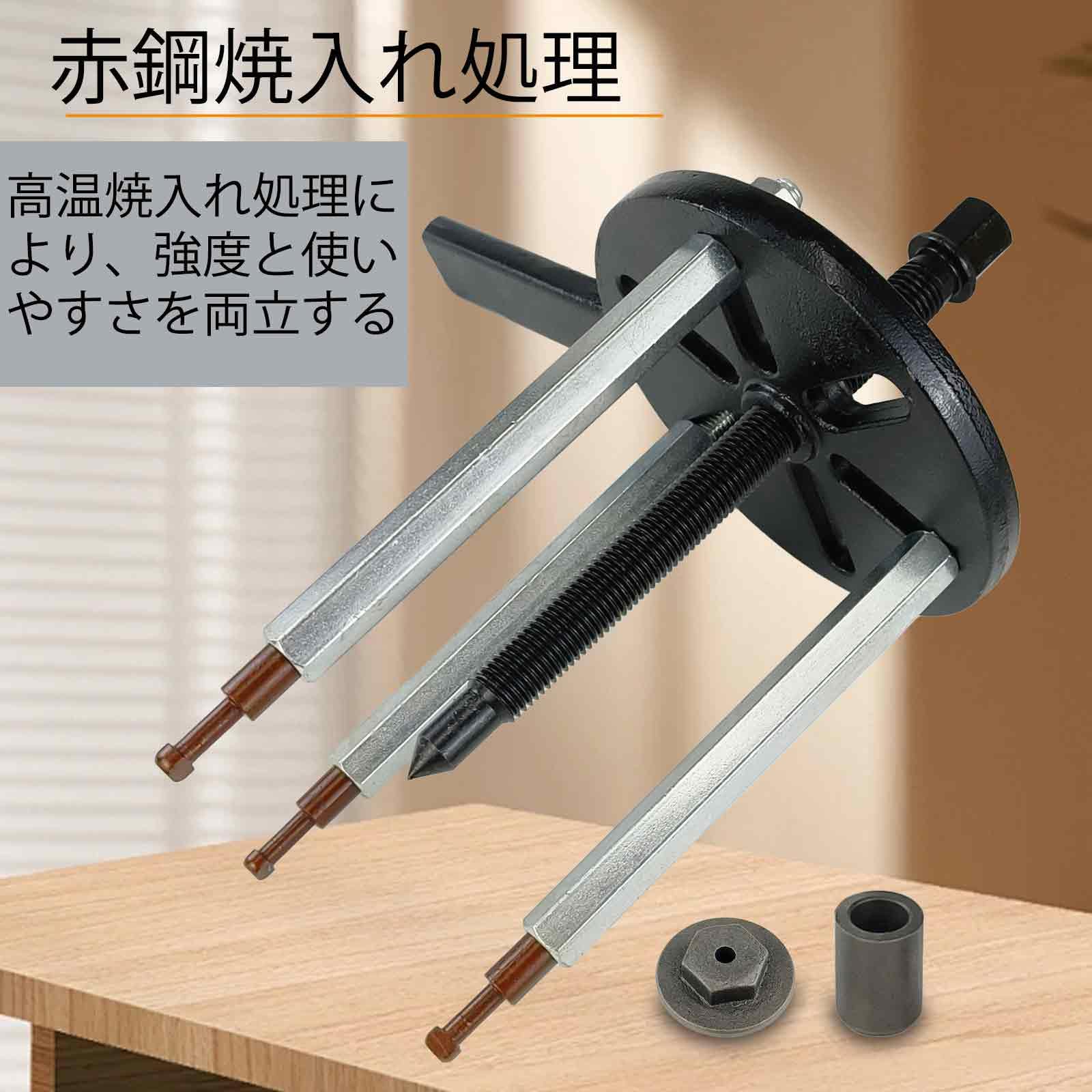 多様なベアリングサイズに対応-6005〜6310モデルなど、幅広いベアリングやギア、圧入部品の脱着に最適。自動車整備や機械メンテナンスなど、様々な現場で活躍します。