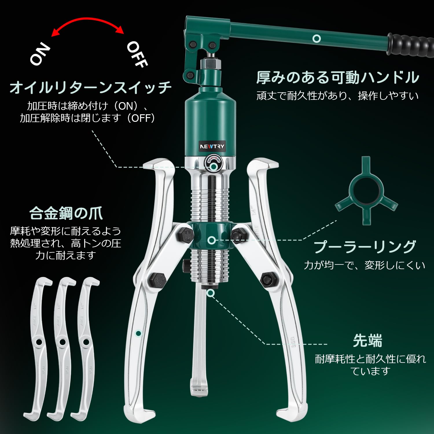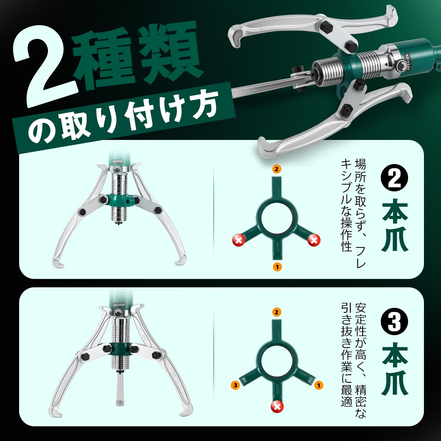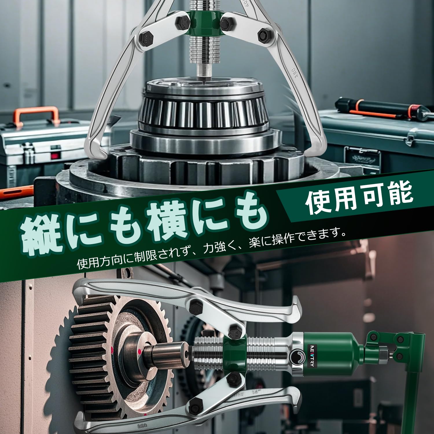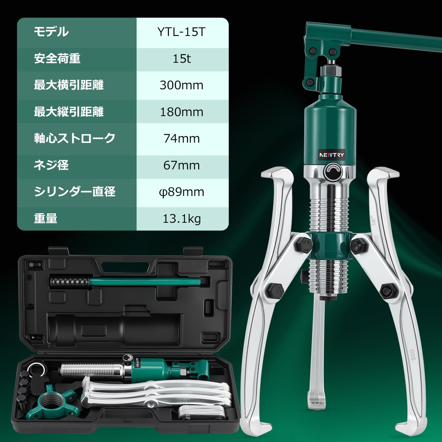 NEWTRY 油圧プーラー 15T 油圧式 一体型 ギヤプーラー 引っ張り距離 横300mm 縦180mm 2本爪 3本爪 水平・垂直兼用 合金鋼プーラ ベアリング取り外し 引き抜き工具