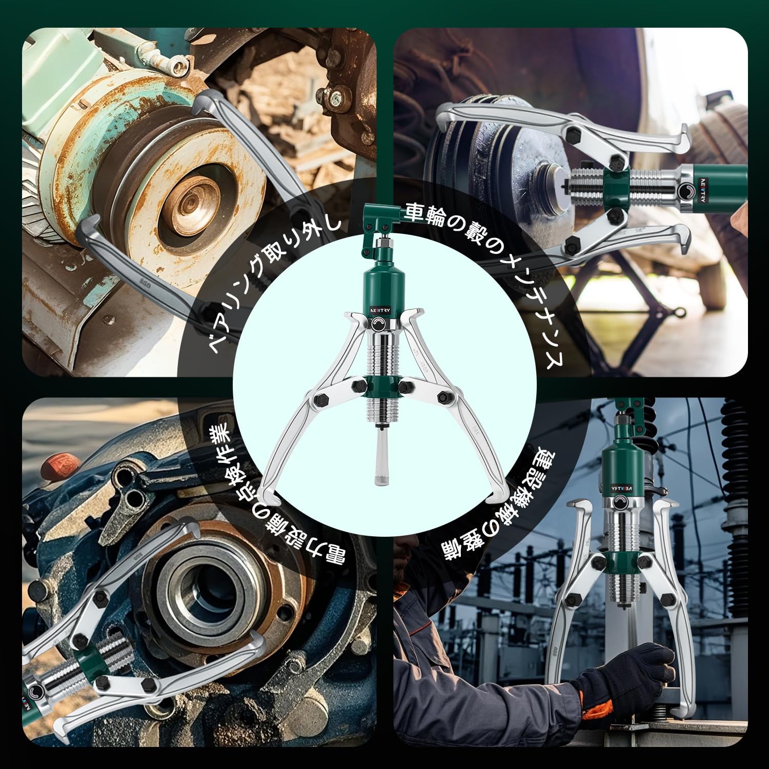 【油圧プーラー】より大きな張力と引っ張り距離が必要な引っ張り出し、取り外し作業に適しています。3本爪、2本爪兼用です。縦にも横にも操作可能です。