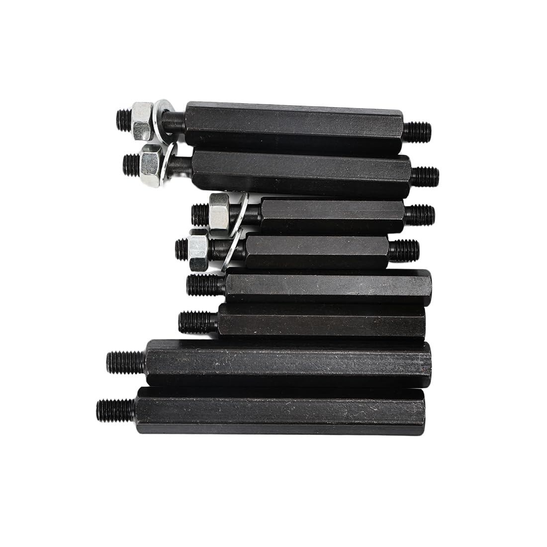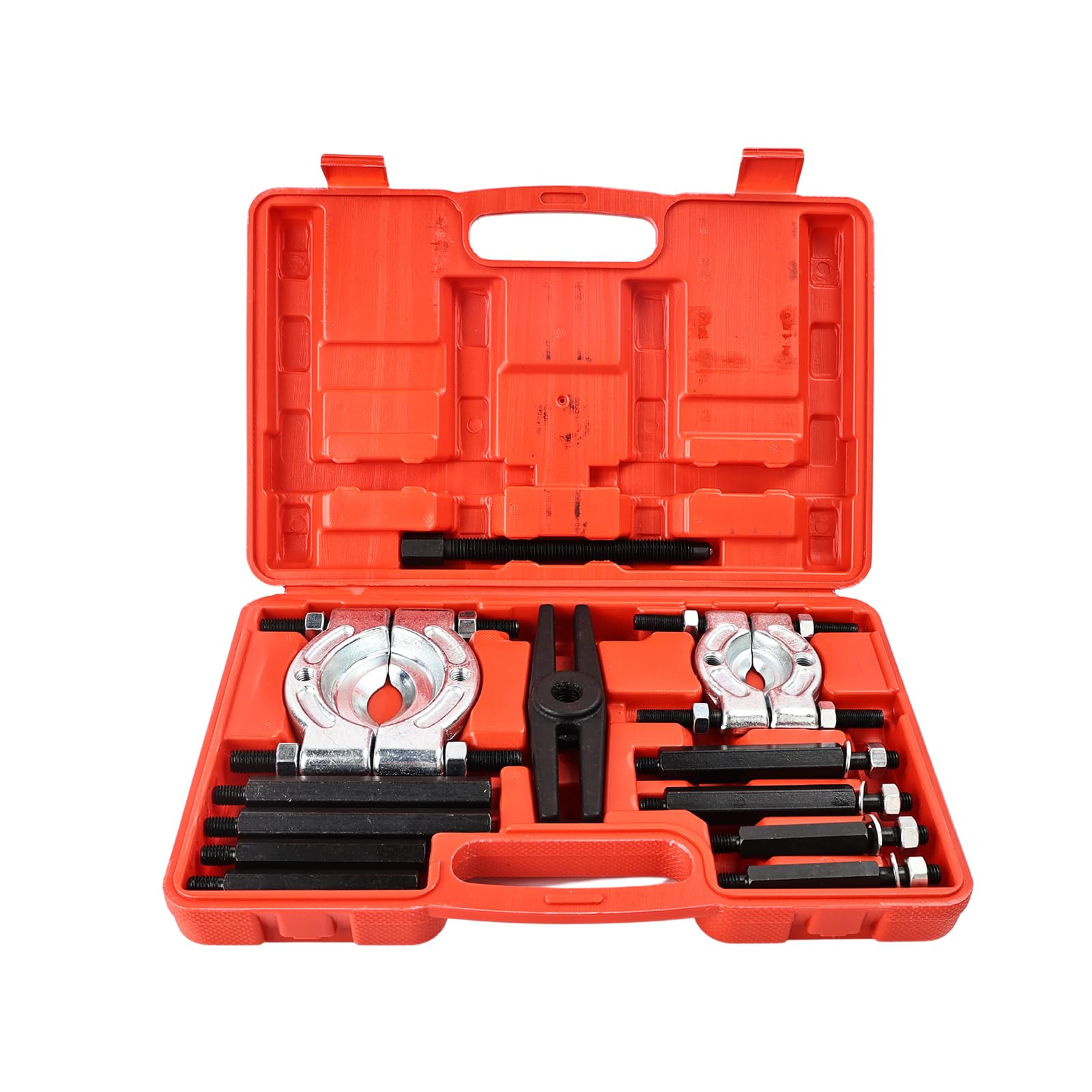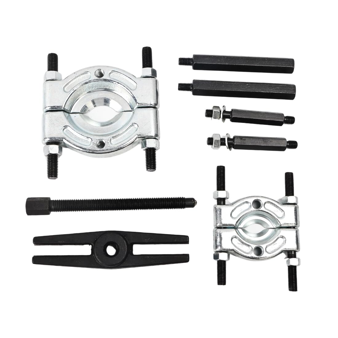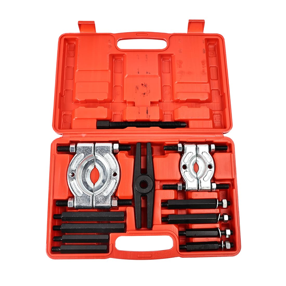 【幅広い用途】車、オートバイ整備工具、ベアリングやギアの抜き取りの際に使用します。すき間のないベアリングやギヤなどの引き抜きに最適です。ダブルベアリングや、密着したギヤの間に挟み込んで使うことができます。軸からベアリングを取り外したり、ベアリングを分割したり、フライホイールを分離したりできます。