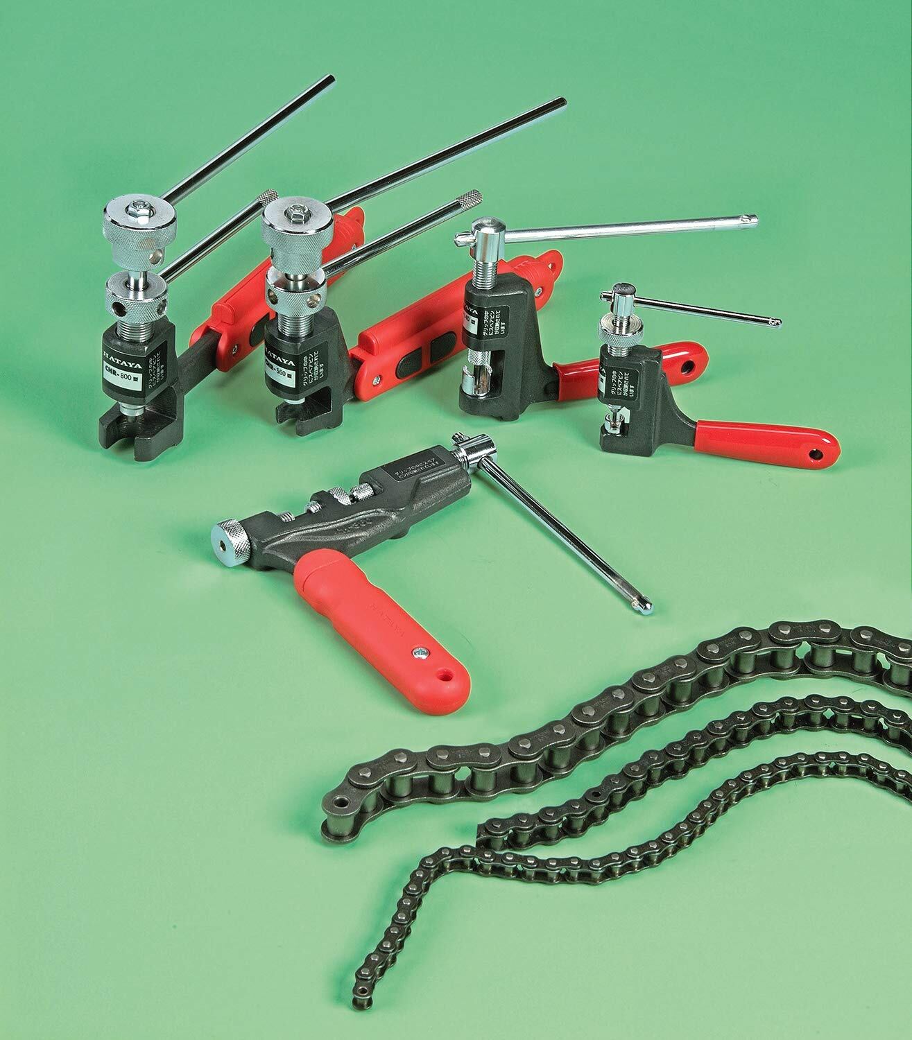 ●グリップが握りやすく、チェーンの切断が簡単です。●付属の交換ピンはグリップ内に収納します。●自転車・バイク・農機具・伝導機器などのローラーチェーンのピン抜き作業に適しています。
