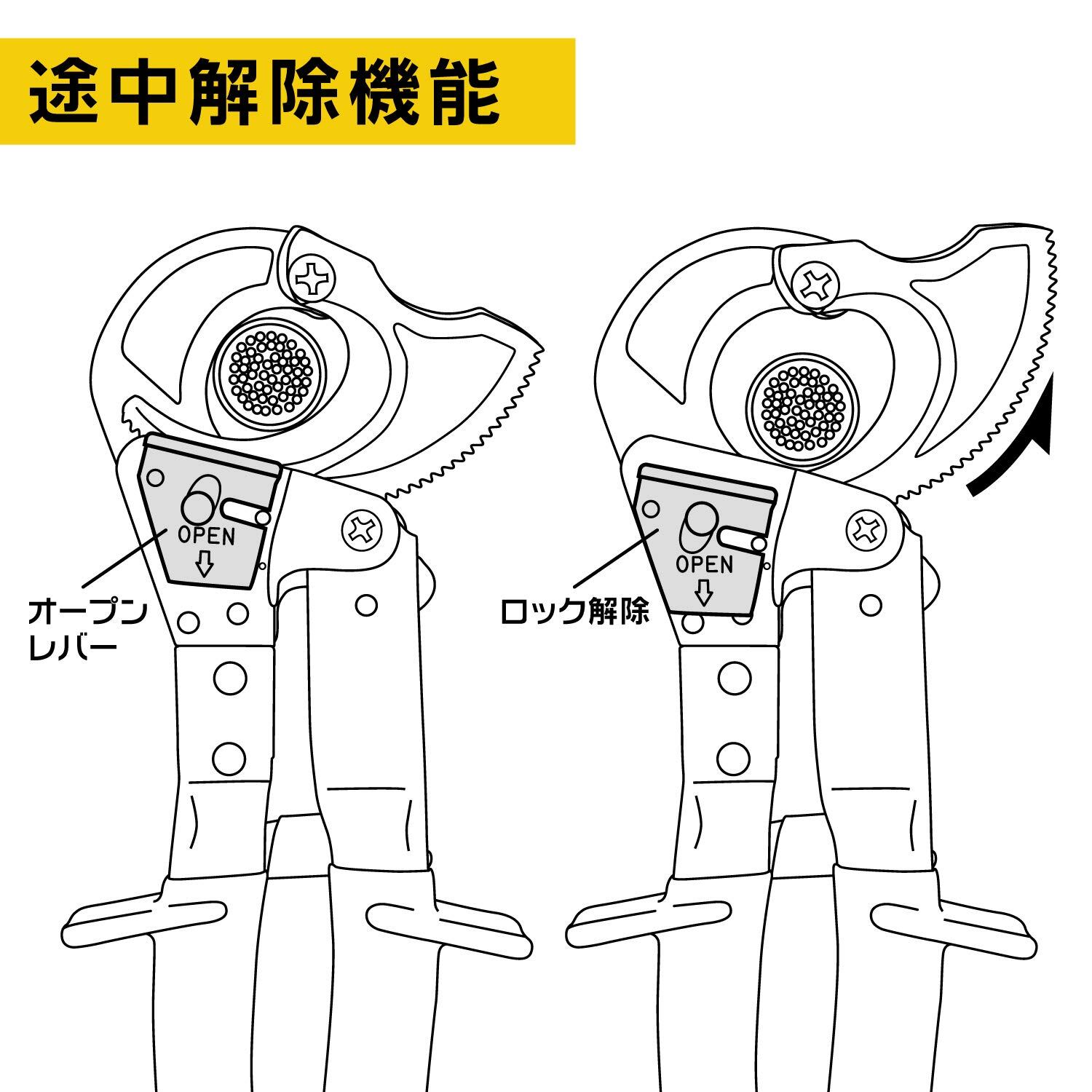 一般電気工事から変電設備・通信線敷設工事などに使用。CV線・IV線・VVR線の切断作業にオススメ
