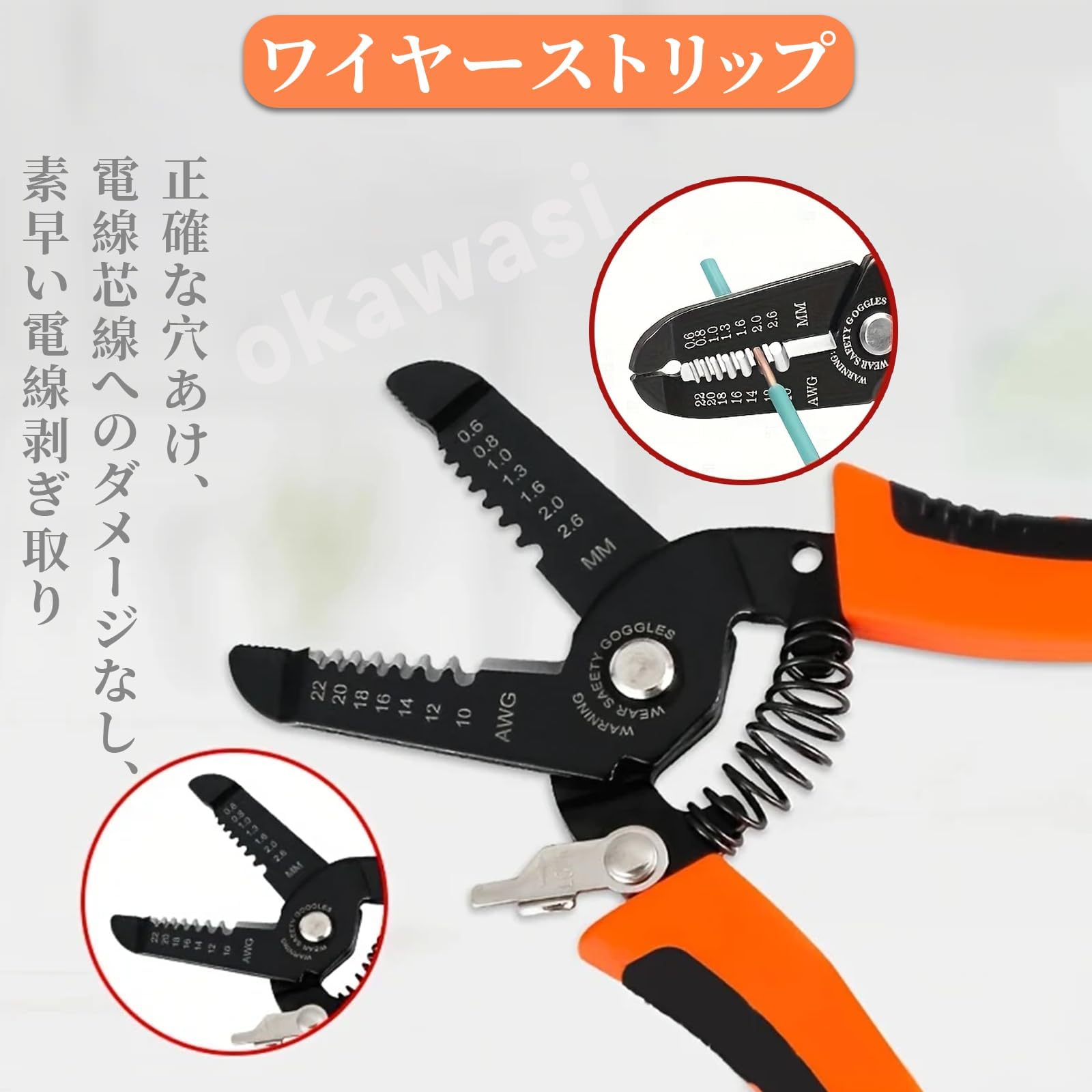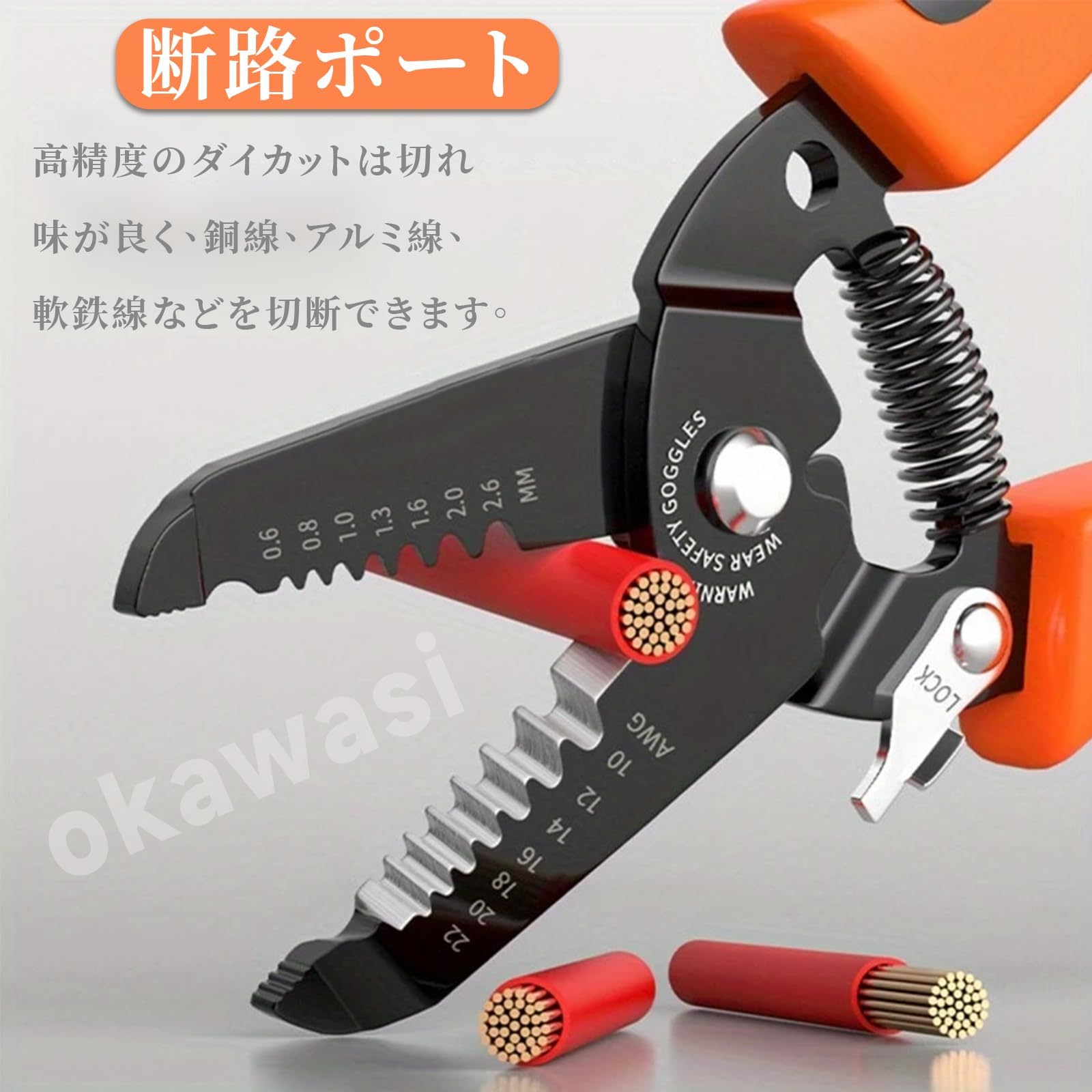 【プロフェッショナル仕様の多機能ツール】高品質のワイヤーストリッパーは、10-22 AWG/0.6-2.6 mmのソリッド銅、撚り線、ケーブルワイヤーをストリップすることができ、ワイヤーの効率的な接続と切断をサポートします、作業効率が飛躍的に向上します。