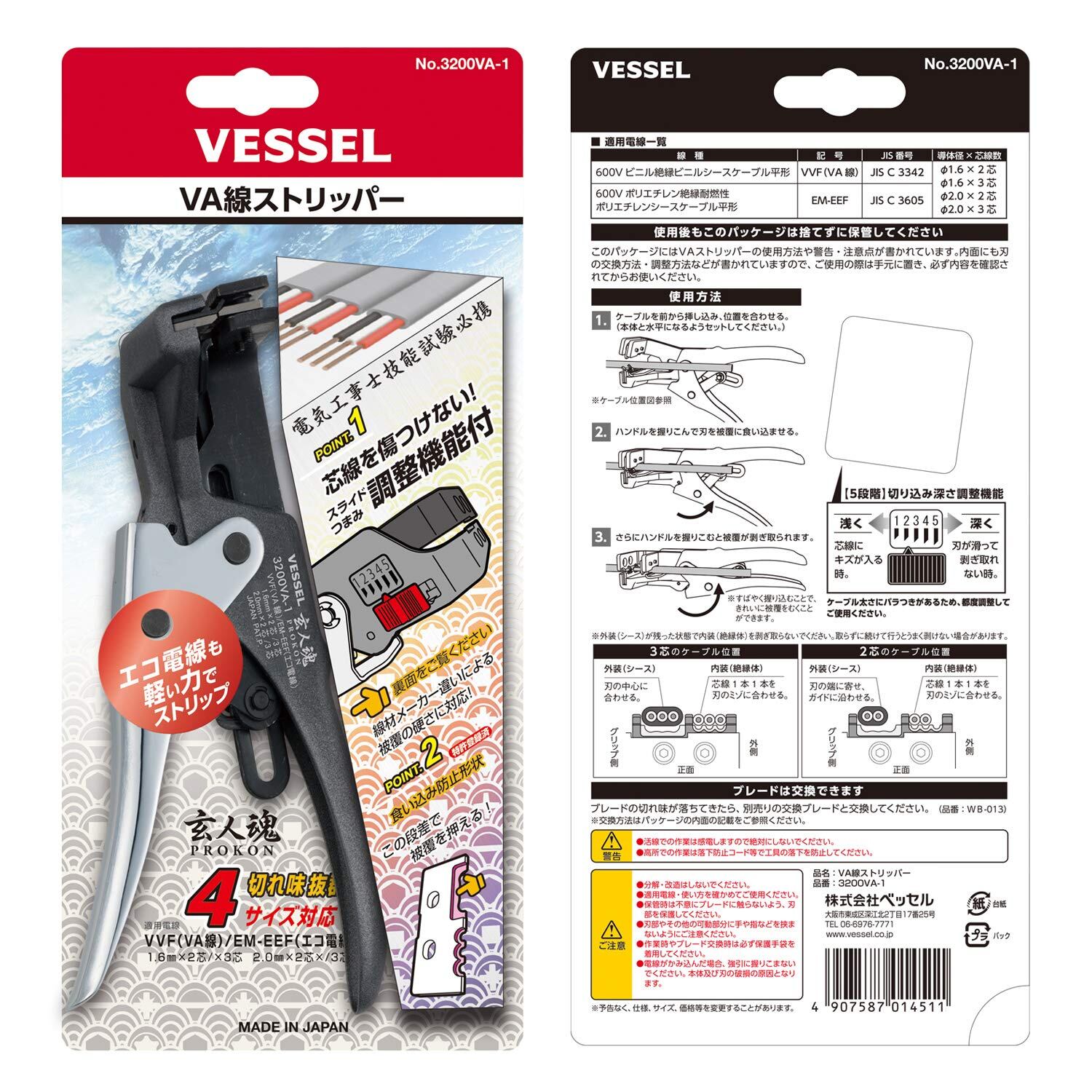 ベッセル(VESSEL) VA線ストリッパー 電気工事士技能試験対応 VVF EM-EEF用 3200VA-1