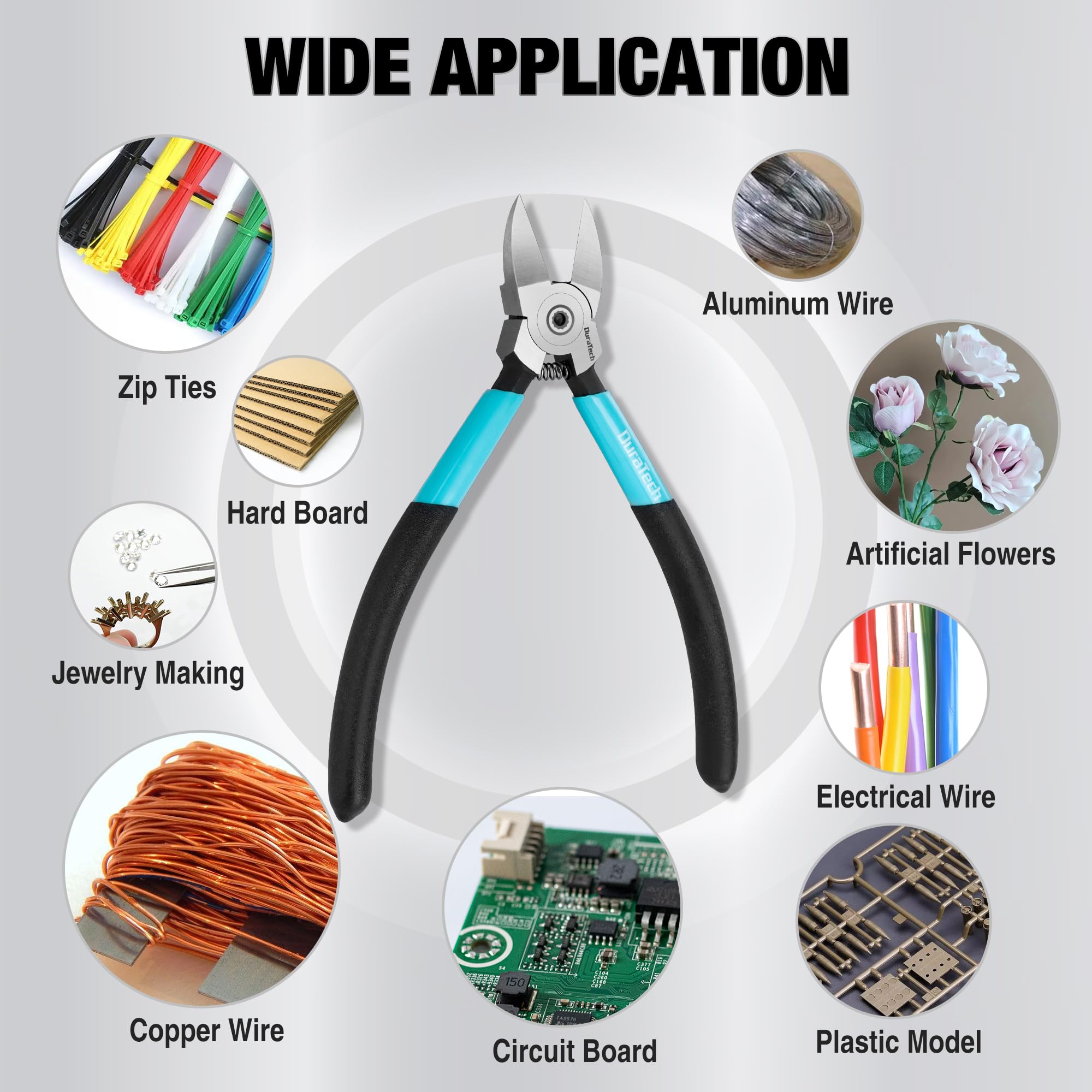 DURATECH ニッパー プラスチックニッパー 薄刃 160mm 斜めプライヤー ワイヤー 軟鉄 銅線切断 DIY手作り 被膜剥き プラモデル 手工業職人 電気工事 機械組立 修理 【バネ付き】