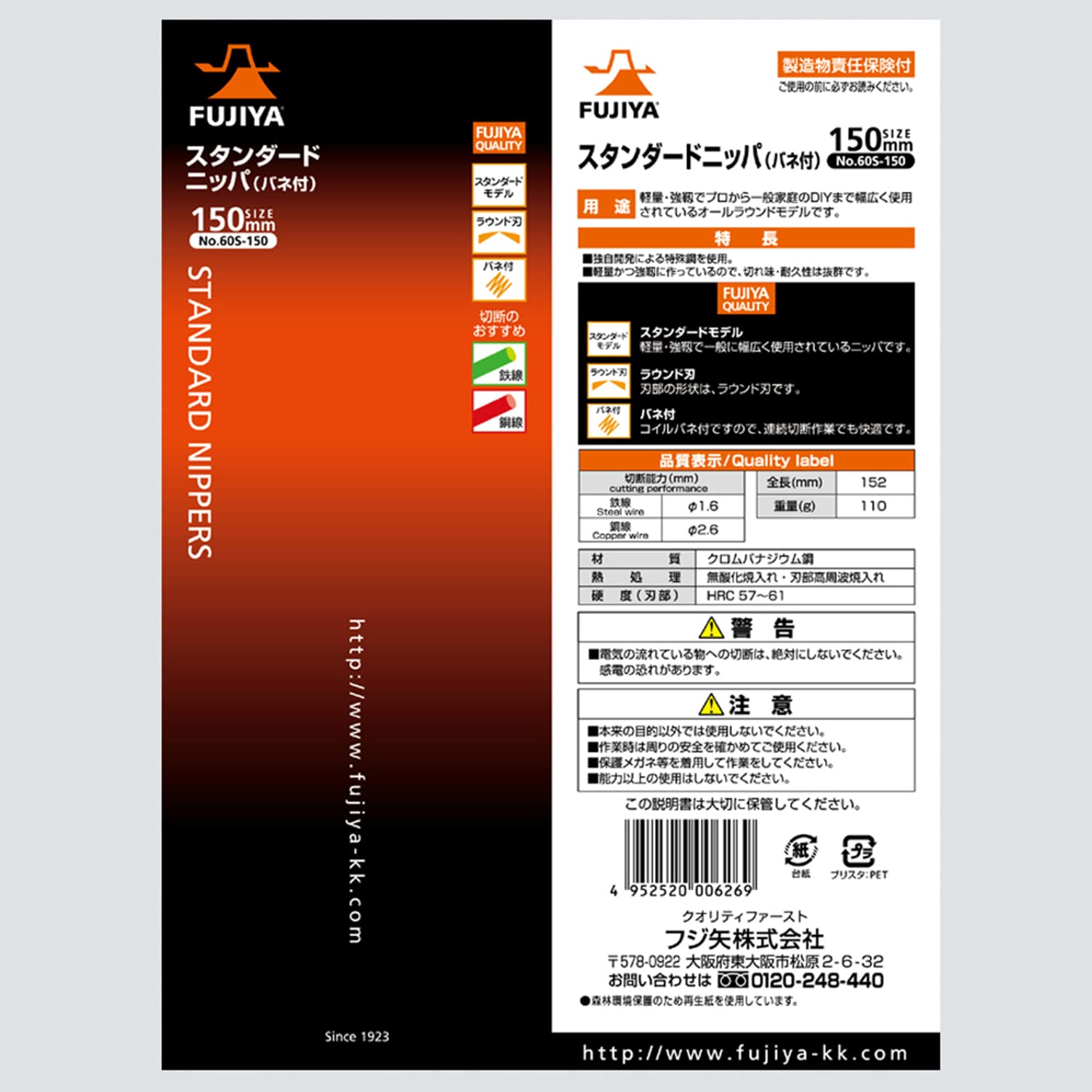 フジ矢(Fujiya) スタンダードニッパ(バネ付) 150mm 60S-150