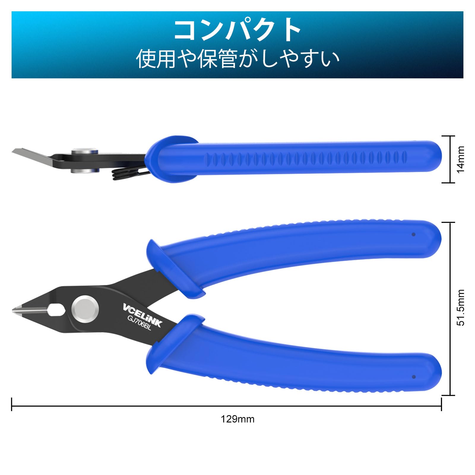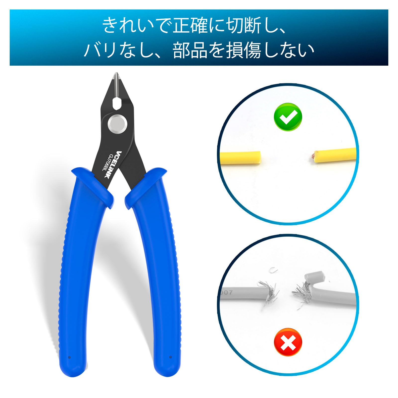 VCELINK ニッパー プラモデル GJ706BL 薄刃 強力 プラスチック 精密ニッパー 結束バンド プラモ用