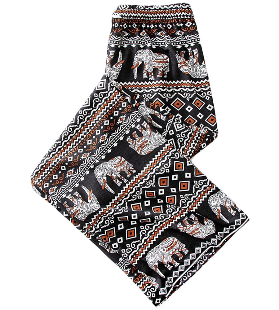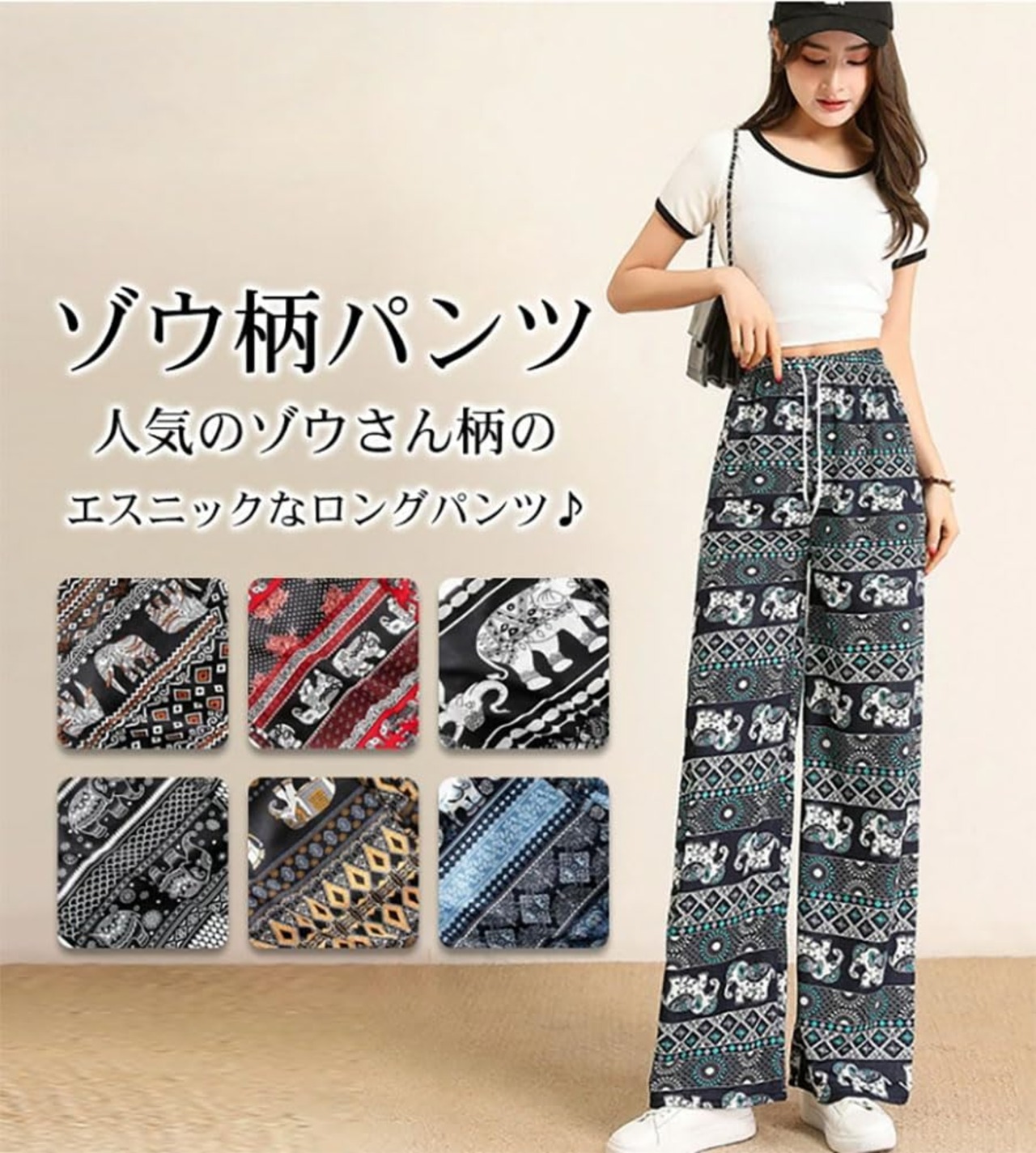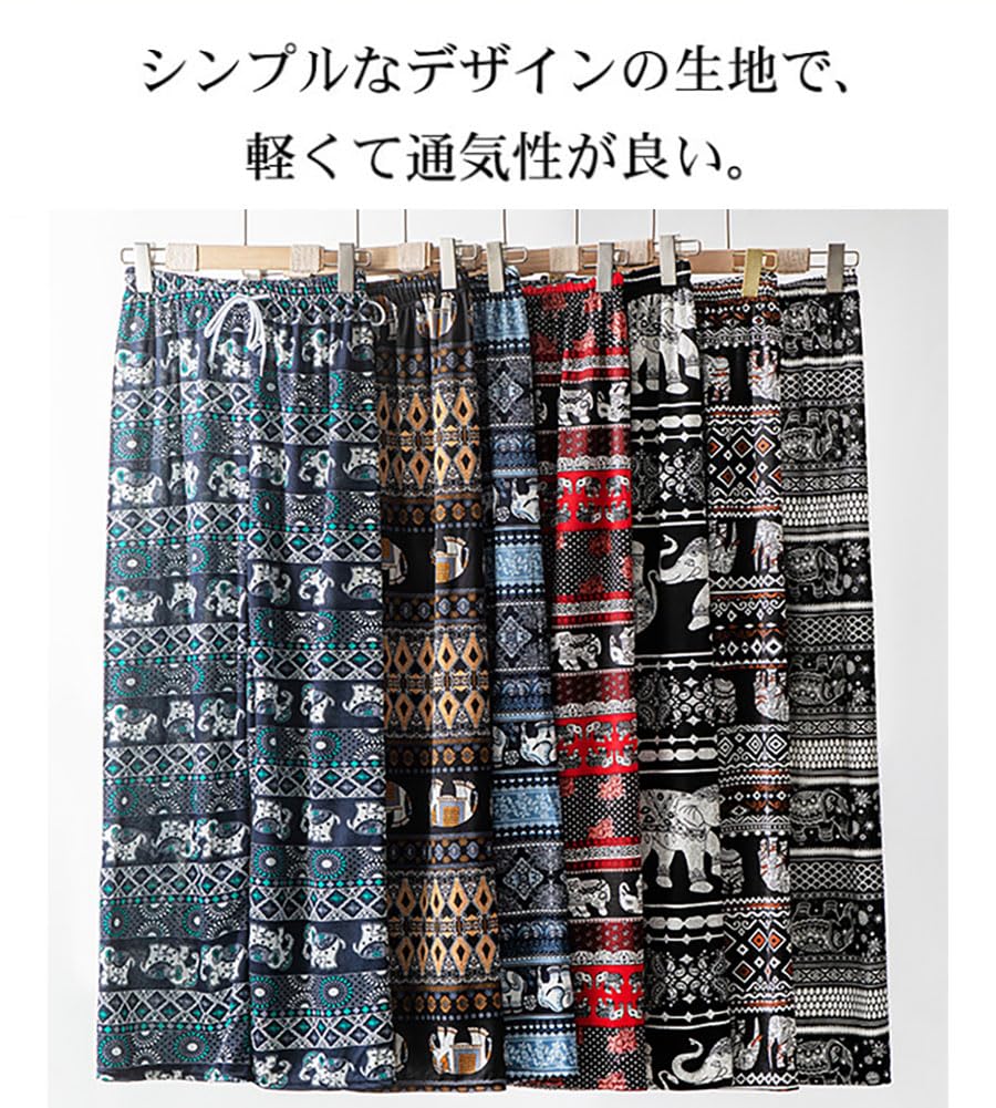 [Celetree] ワイドパンツ ロングパンツ レディース ウエストゴム 象 総柄 エスニック アジアン 薄手 涼しい 春 夏