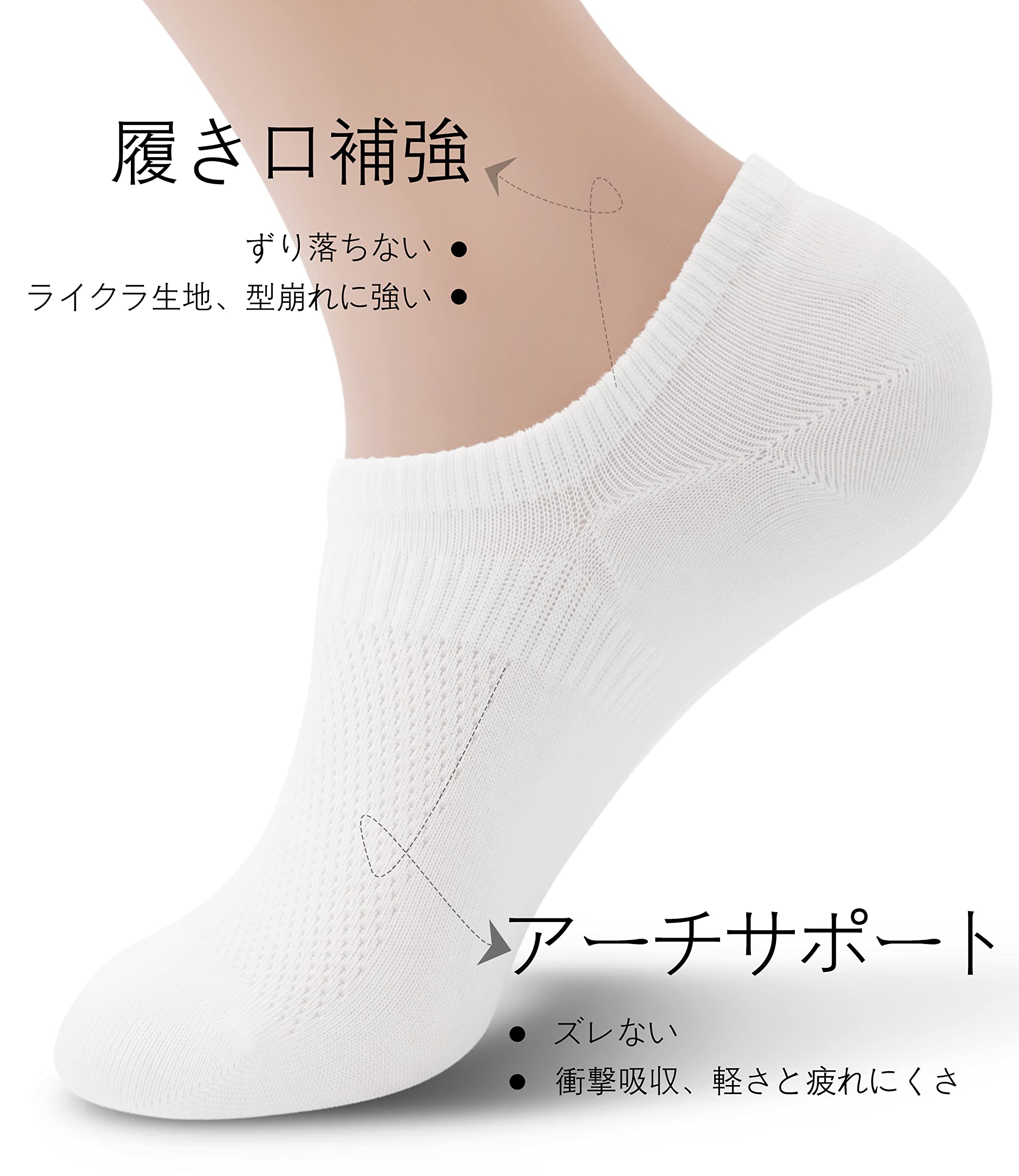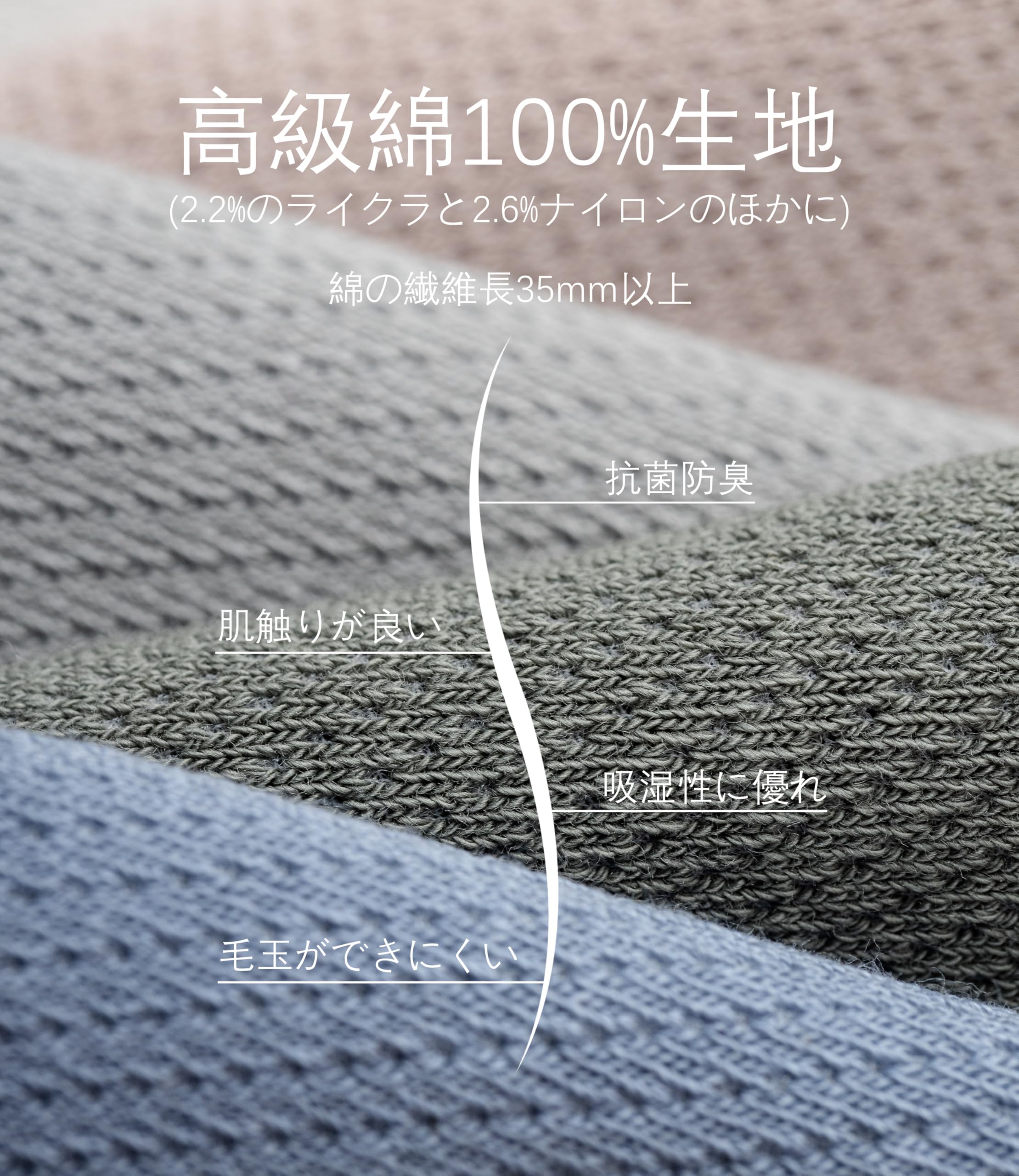 【高級綿95%】: コットン95%生地、高級綿の繊維長35mm以上、毛玉も少なく破れたりもせずなかなか丈夫です、新しい技術の導入、靴下の穴が開きにくいするには。履き口補強、ライクラ生地伸縮性がある、型崩れに強い、締め付けない。肌触りがいい感じ、吸湿性、抗菌防臭機能に優れてます、夏用にの薄いサラサラした肌触りの生地です