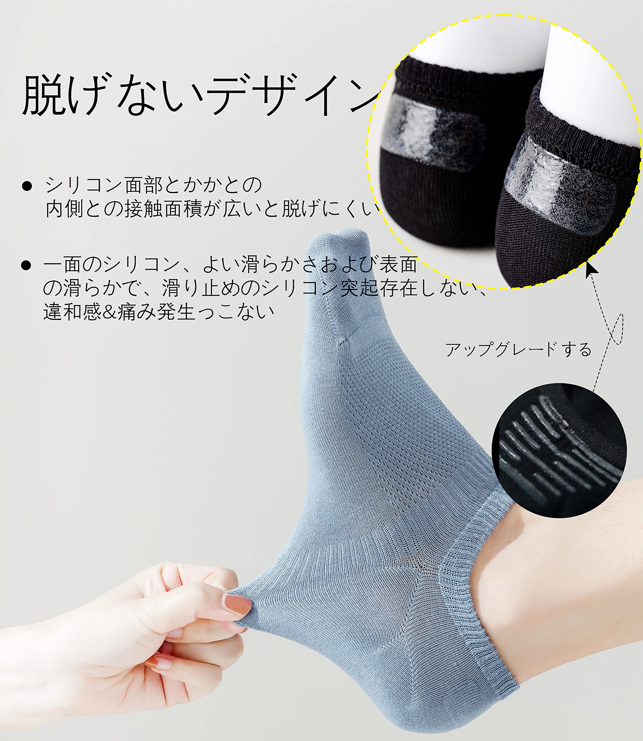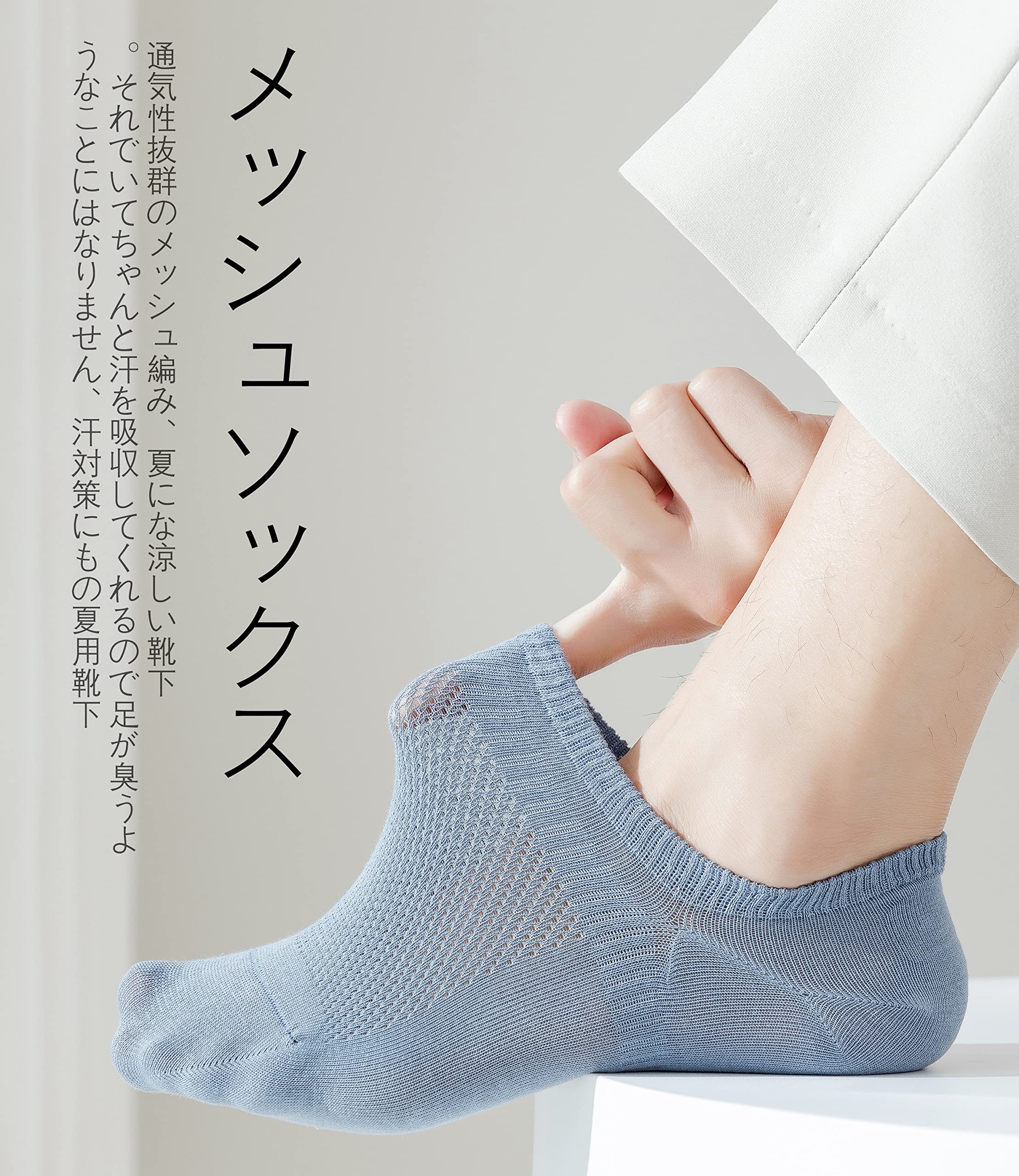 [banerise] 靴下 メンズ フットカバー 脱げない 【 綿95% 縫い目のない】 くるぶし ソックス 夏用 メッシュ くつした スニーカー 見えない ショートソックス 薄手 5足 セット