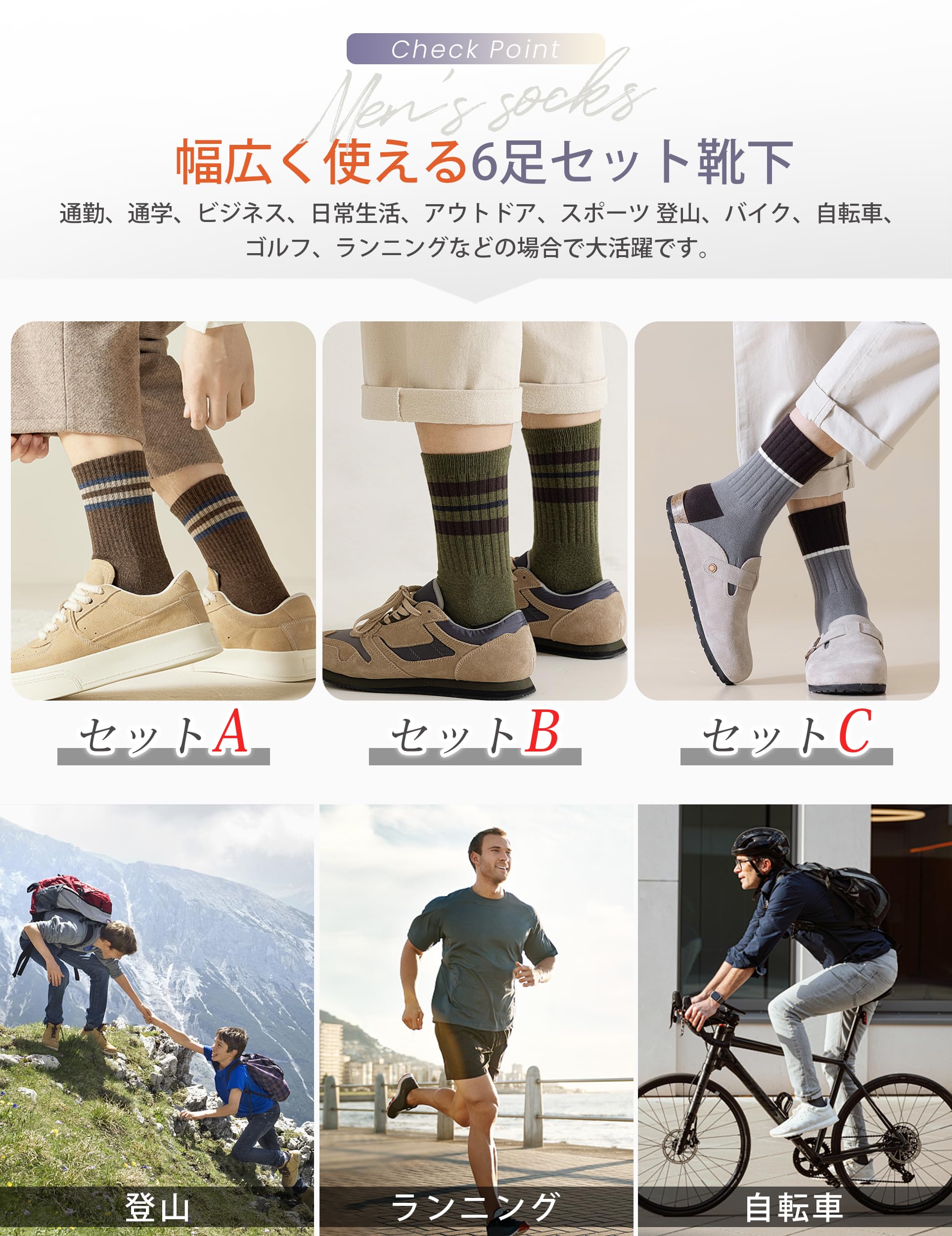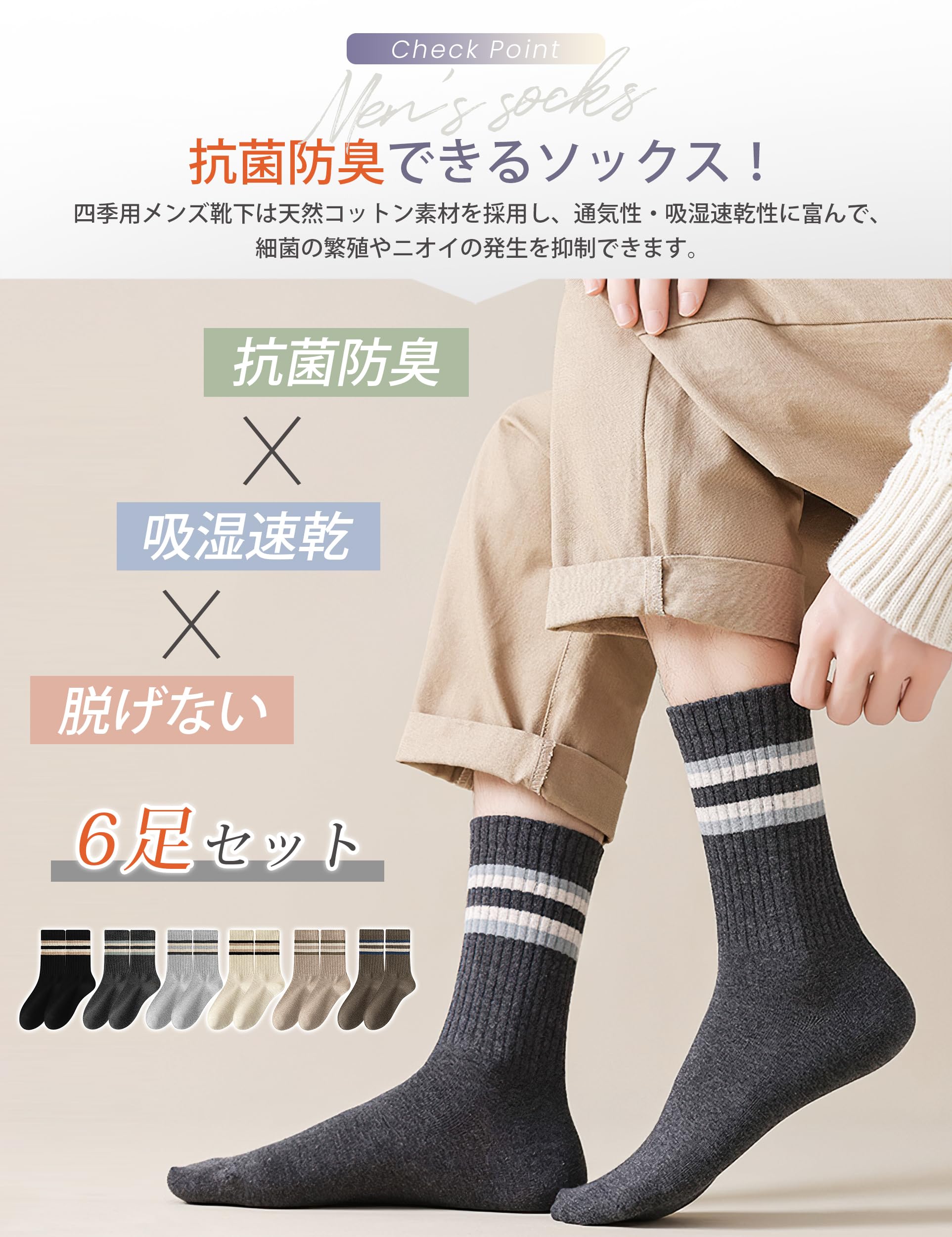 [SLEEPSINERO] 靴下 メンズ スポーツソックス 【抗菌防臭・吸湿速乾・三重脱げ防止】 メンズ靴下 綿 通気性 吸汗 消臭 伸縮 滑り止め 蒸れない スニーカー ソックス ランニング 登山 通勤 通学 6足セット 四季適用