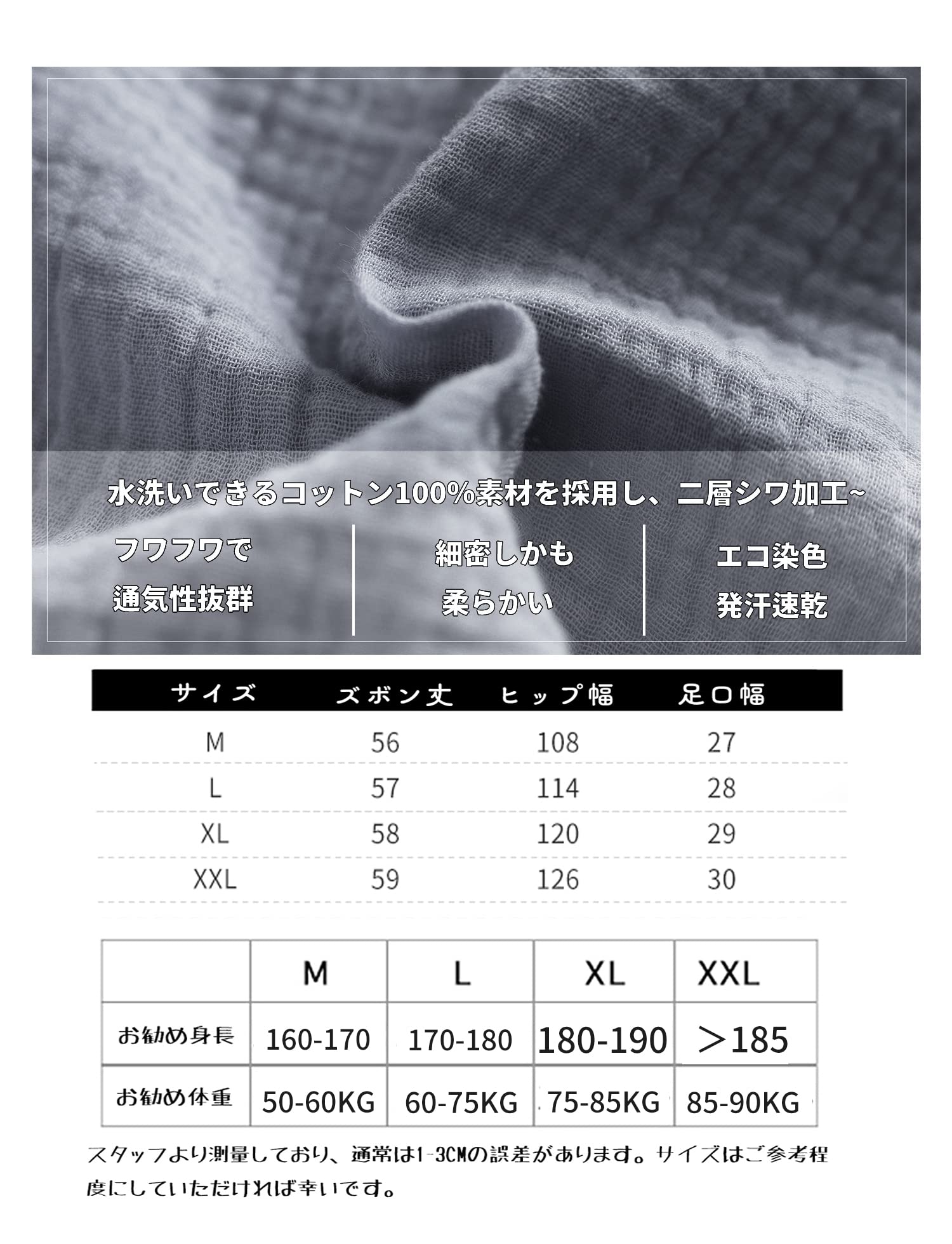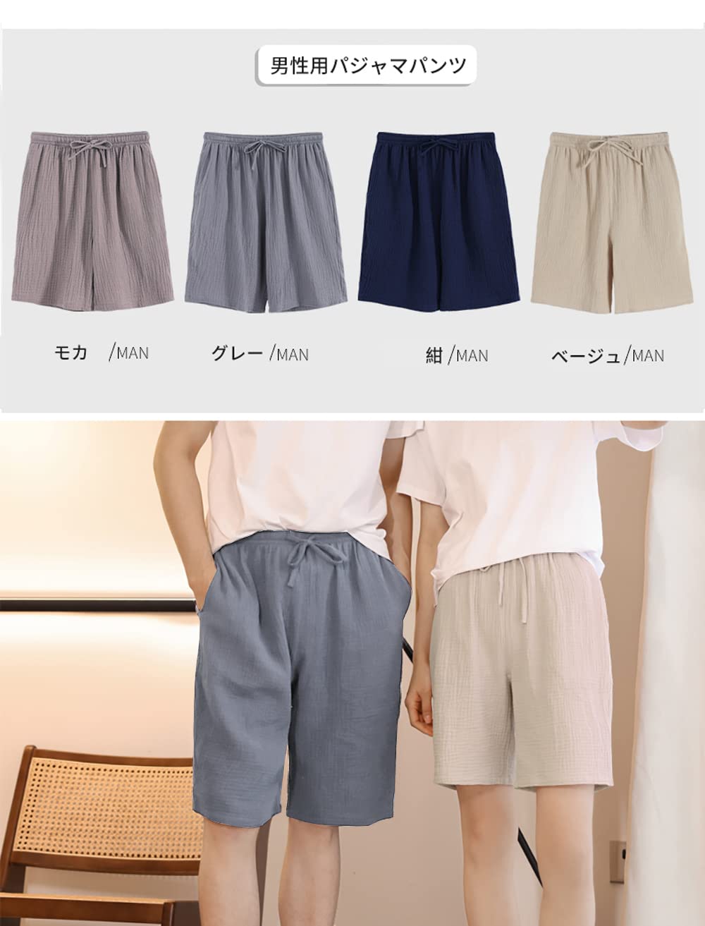 [BdeSYT] パジャマパンツ メンズ ショートパンツ ルームパンツ ハーフパンツ 二重ガーゼ 綿100% 薄手 部屋着 吸汗速乾 通気 肌に優しい ルームウェア M-2XL