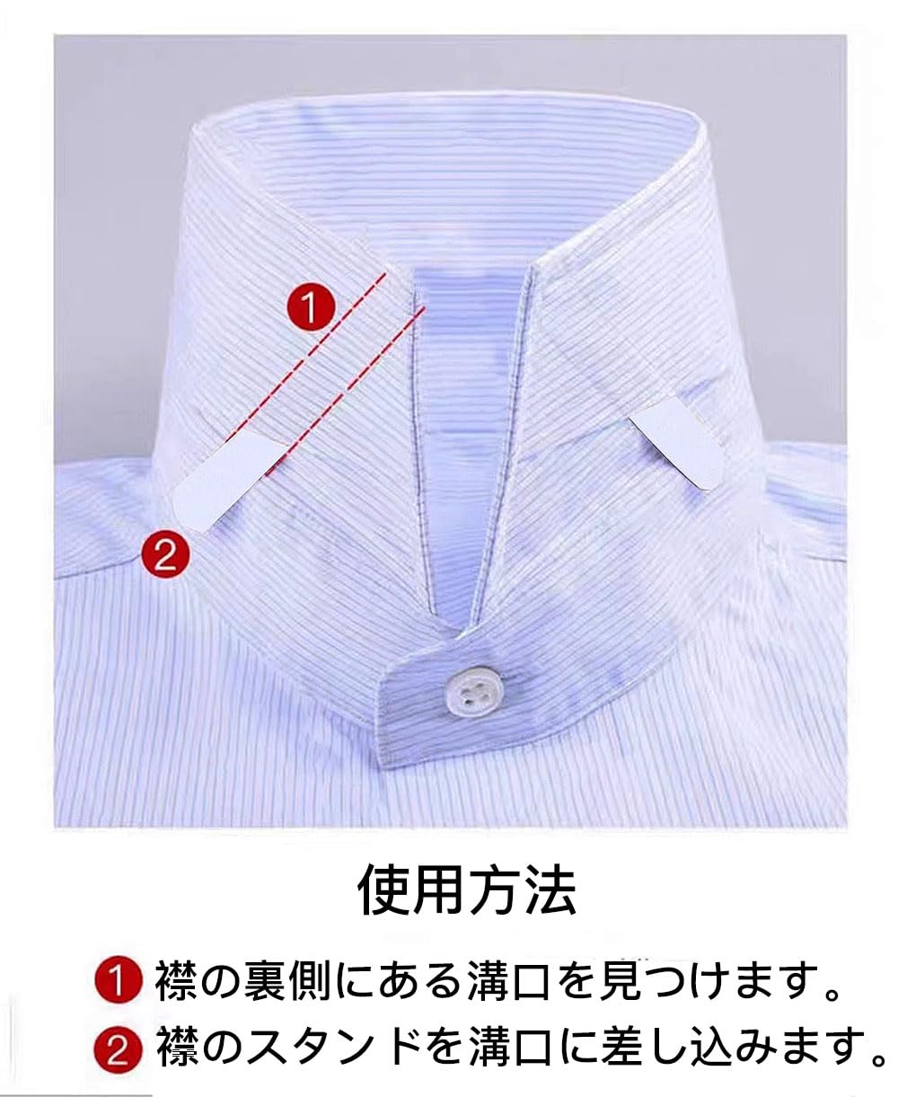 【襟の形状を維持】この衿補助具は、シャツの衿の形状を維持するので、一日中忙しい活動をしていても、衿が崩れる心配はありません。