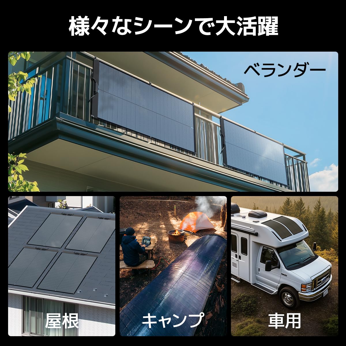 5.【軽量な太陽光パネル】重量はわずか2.7kg、厚さ1.5mm。キャンピングカーに設置して、車高が高すぎたり重量がかかったりして困ることもなく、車検も簡単に通過できます。悪天候であっても簡単に収納可能。
