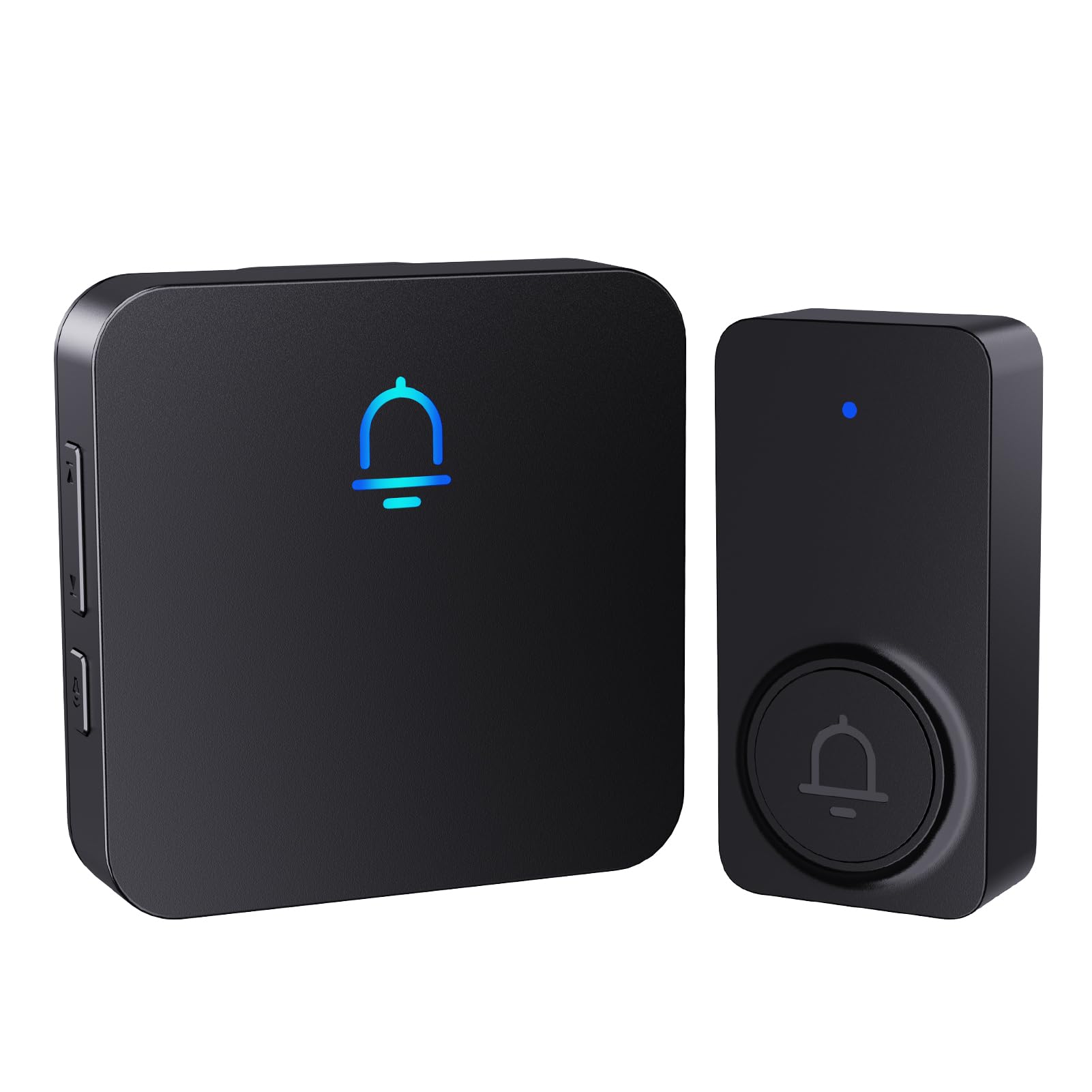 SECRUI ワイヤレスチャイム 玄関チャイム インターホン ワイヤレス 工事不要 電池式 防水ドアベル 呼び鈴 7色提示led 32曲 5段階音量調節 300M無線範囲-ブラック